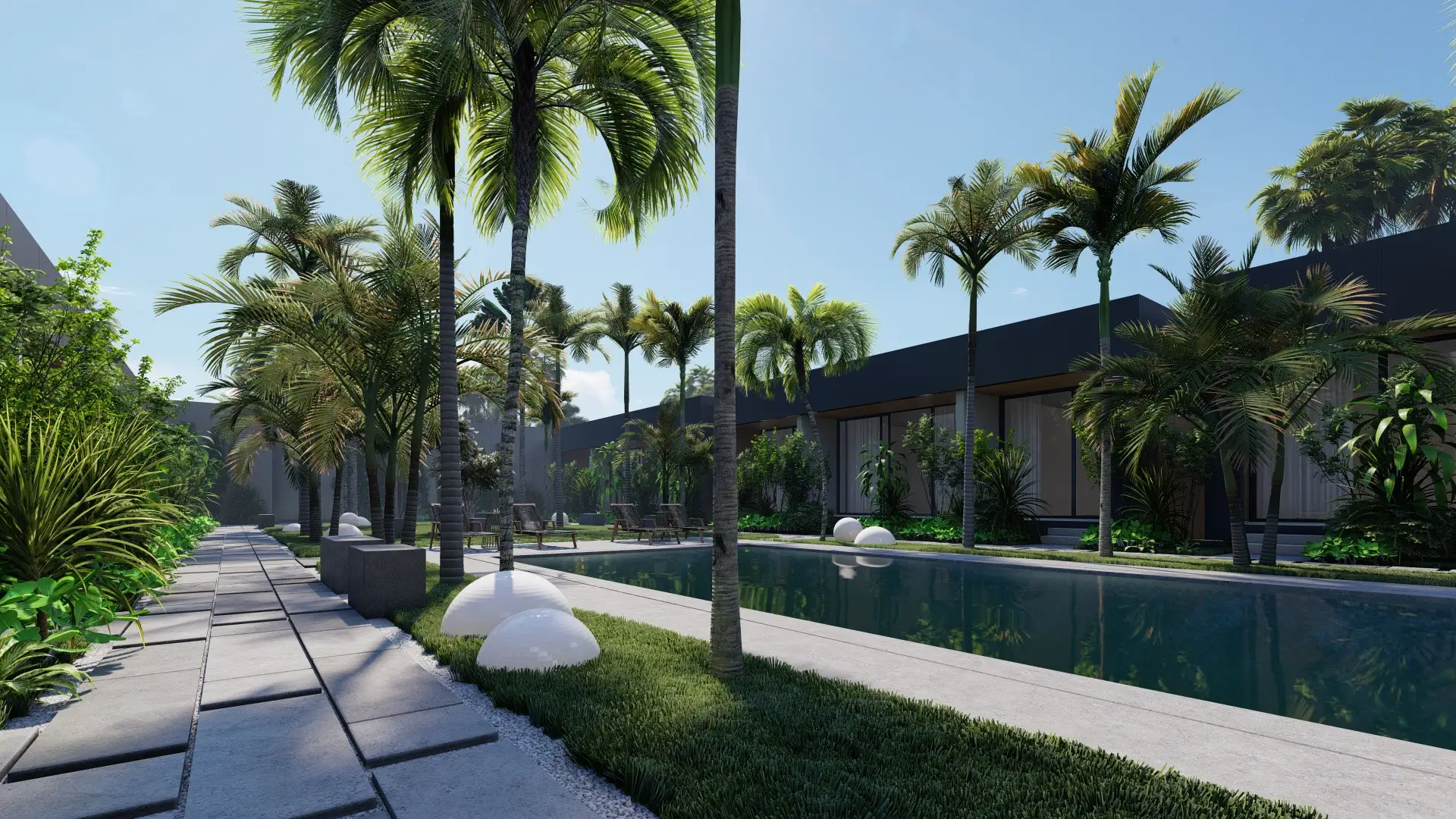 7 Palms stands out as a low-density, eco-conscious development featuring well-planned one-bedroom units that can be customized and combined to suit your needs. Each of the three units in a single building can easily transform into a spacious two-bedroom apartment or even a three-bedroom villa. This flexibility makes 7 Palms an ideal choice for investors, digital nomads, or anyone seeking a serene, comfortable island residence.