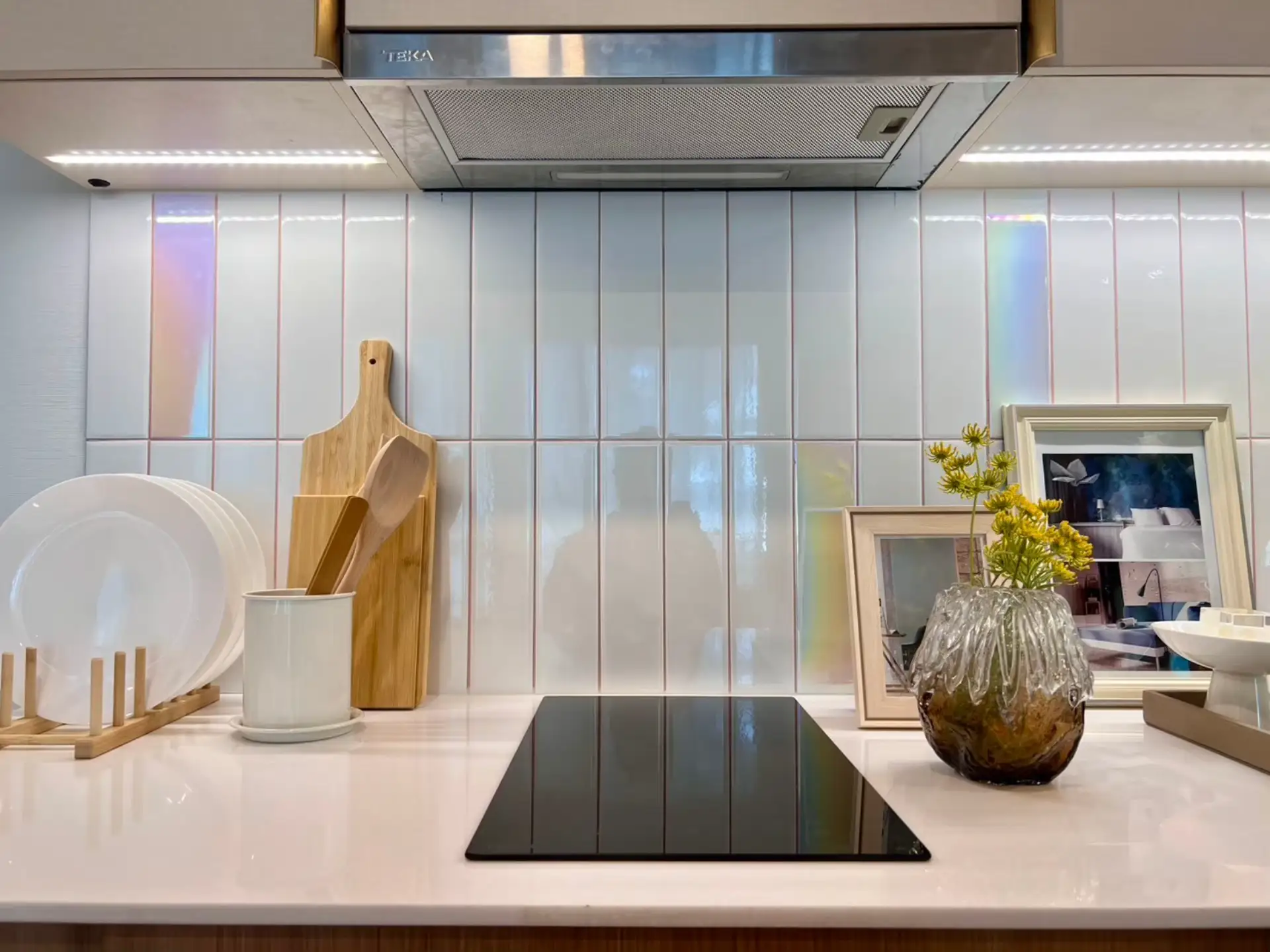 Built-in pantry with electric hob, sink, and hood