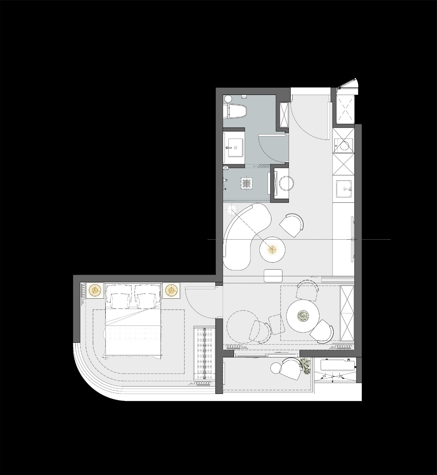 The 42-square-meter Anava 1 Bed Unit is thoughtfully designed to optimize space and functionality. The open-plan layout seamlessly connects the living, dining, and kitchen areas, creating an inviting atmosphere perfect for relaxation and entertaining. The bedroom is a private haven, complete with ample storage and large windows that invite natural light and showcase breathtaking views of Koh Samui’s tropical landscape.