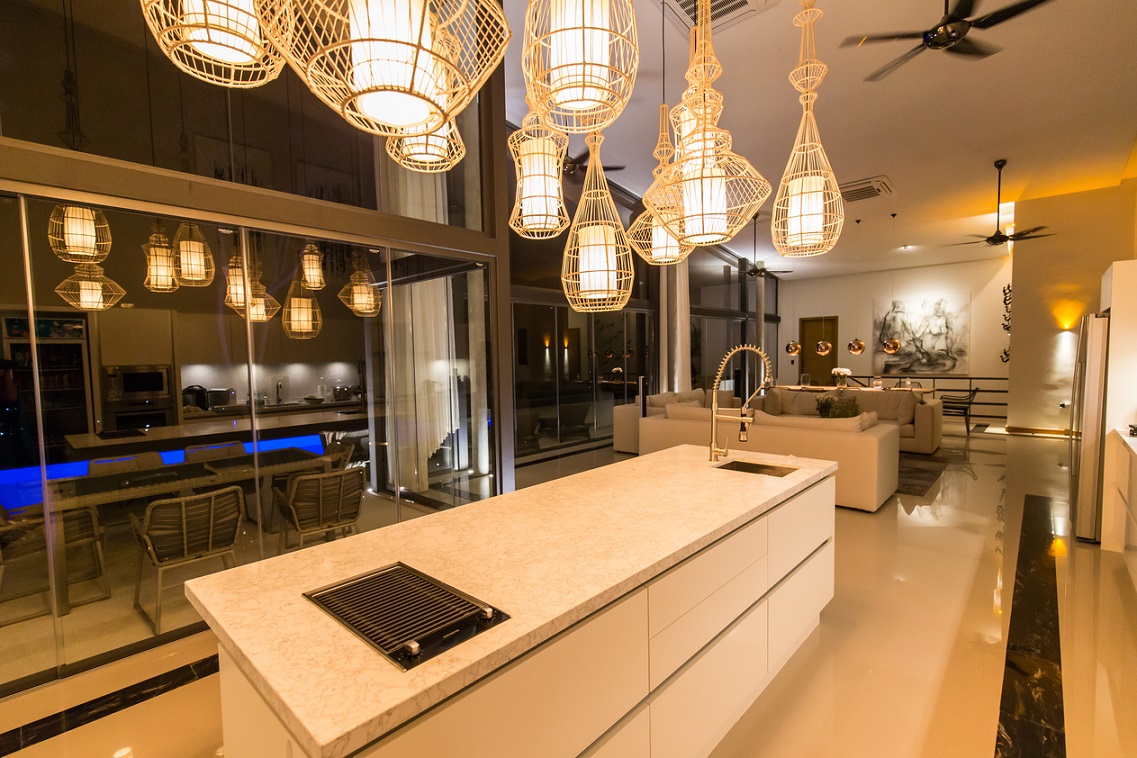 The addition of a maid’s room enhances the villa’s functionality, making it an ideal choice for families or those requiring additional support for property management. - Modern Gourmet Kitchen: