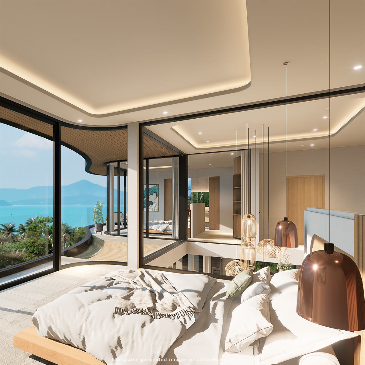 The Bel Roc Bel Mont villas are meticulously designed to harmonize with their tropical surroundings while providing contemporary luxury. Each villa is set on a land size of 363 square meters, with a build-up area of 315 square meters, offering ample space for both indoor and outdoor living. The architectural design features large floor-to-ceiling windows and sliding doors, allowing natural light to flood the interiors and offering unobstructed panoramic sea views.