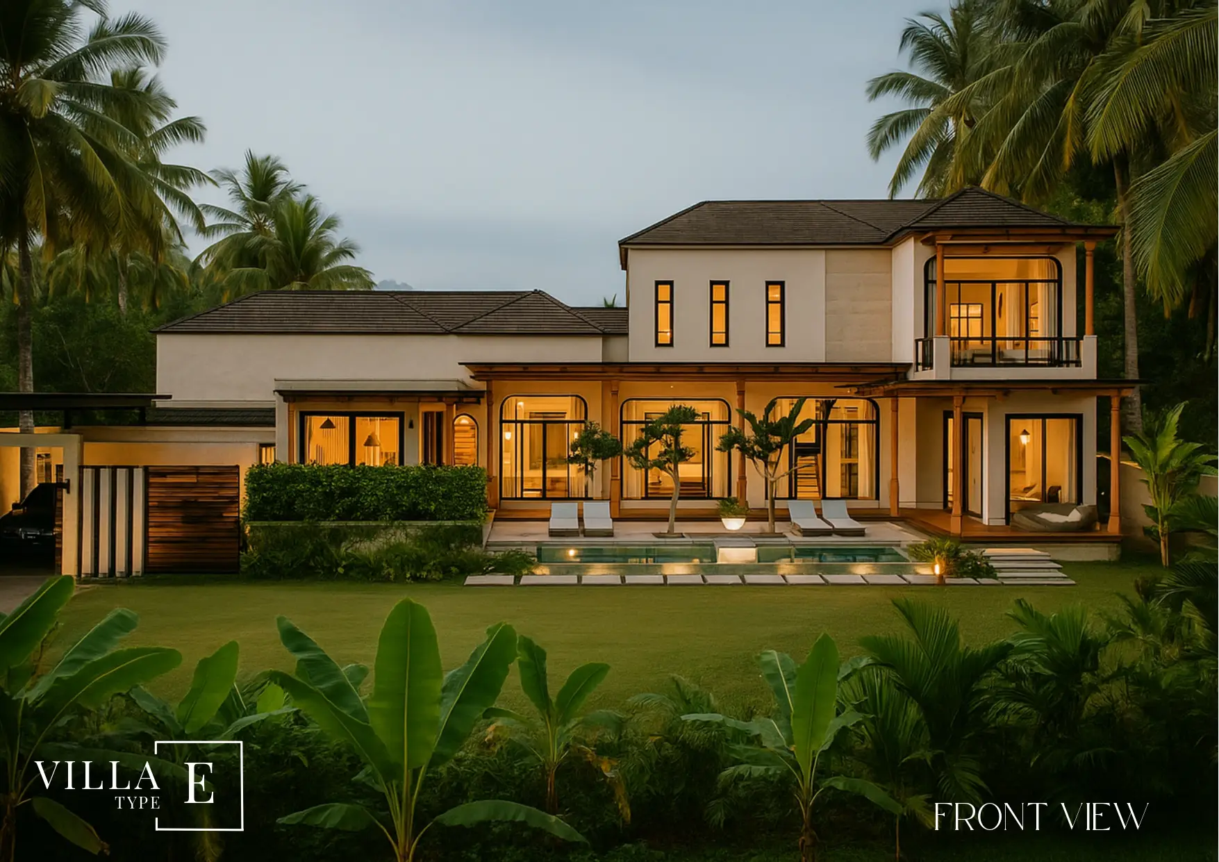 At the heart of Villa E lies its private swimming pool, framed by tropical plants and a spacious sundeck. Whether you wish to enjoy a refreshing dip, host evening gatherings, or simply relax with a book under the palm trees, the outdoor area provides a peaceful sanctuary.