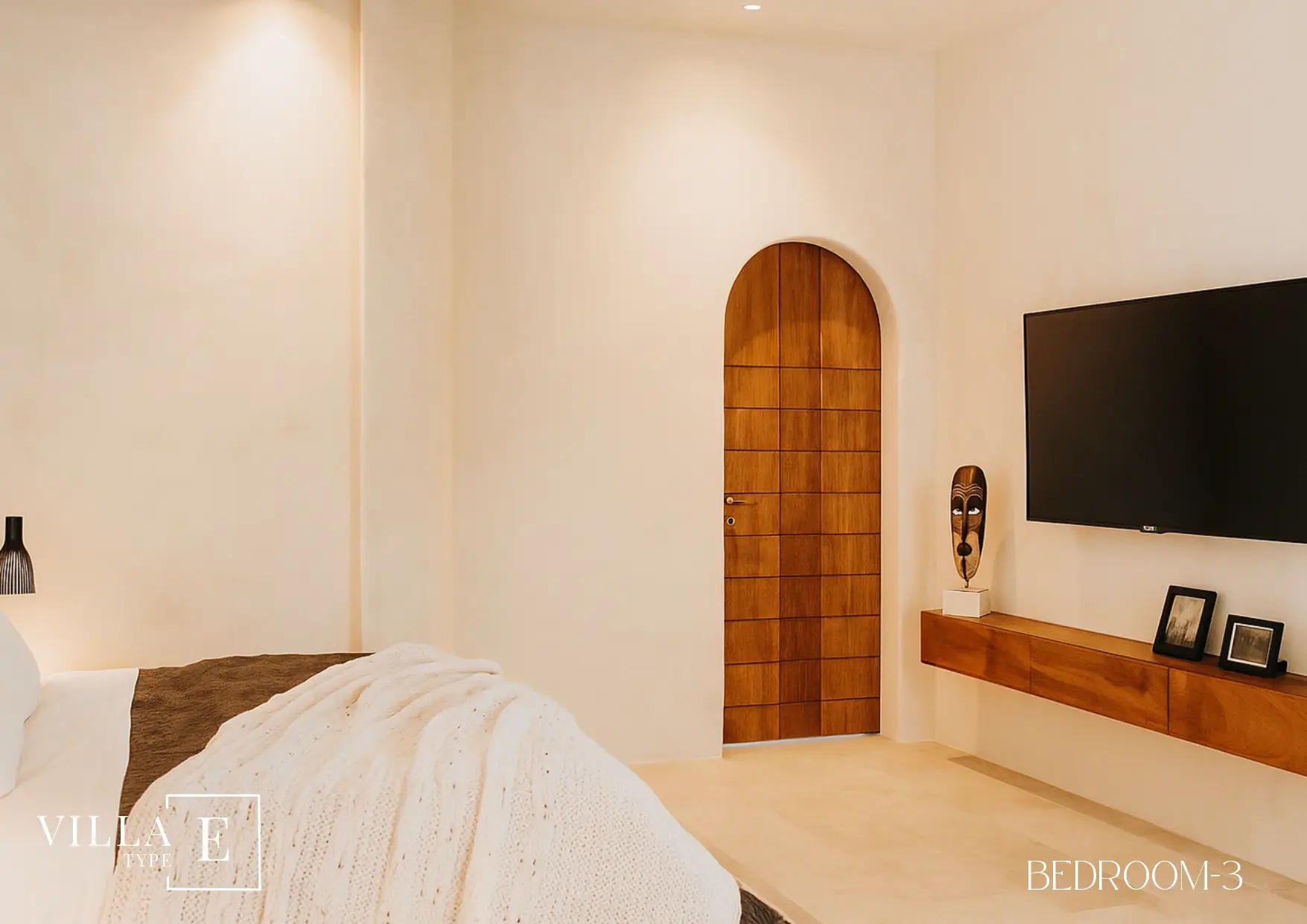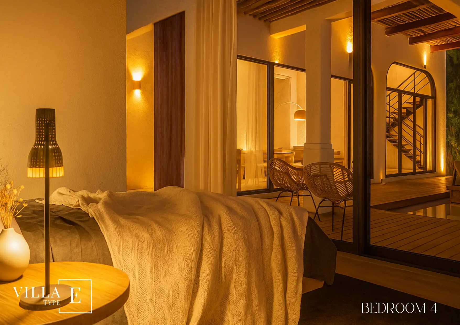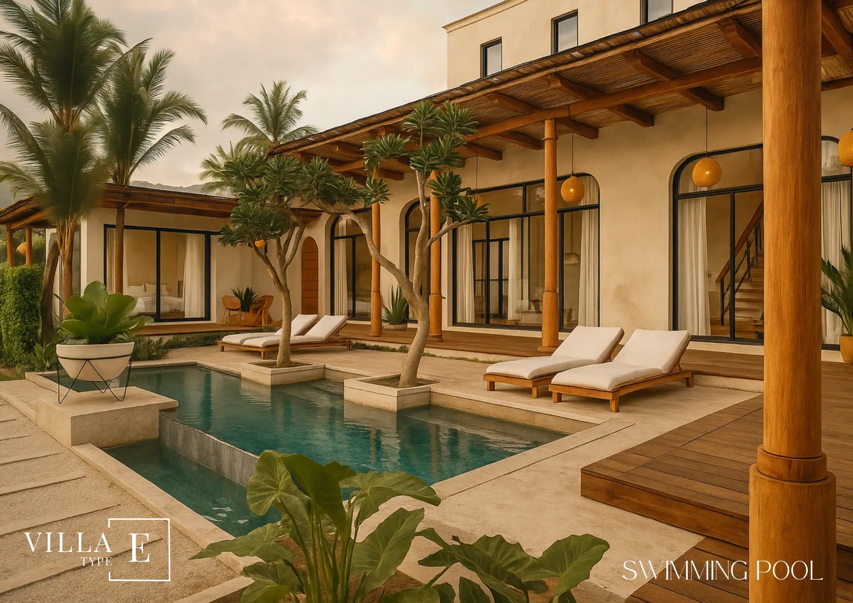 Villa E showcases the architectural identity that has made Boho Chic Village one of the most desirable destinations for modern homeowners. Every line, curve, and texture has been thoughtfully chosen to celebrate simplicity, openness, and natural flow. The use of locally sourced materials — warm wood tones, natural stone, and soft earthy hues — gives the villa an inviting and harmonious feel.