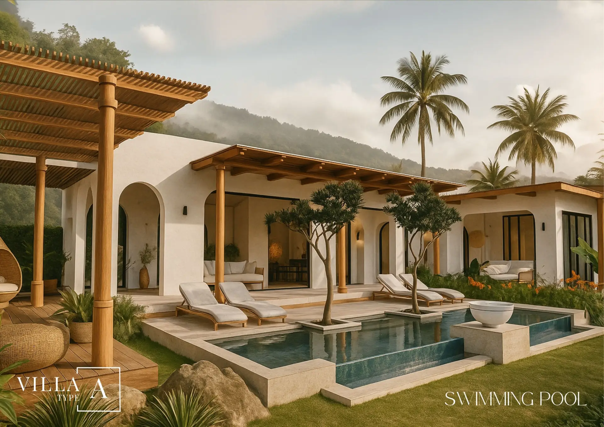 Villa Type A: Spacious 3-bedroom pool villas with 308 sqm of usable space, ideal for families or those seeking more room to entertain.