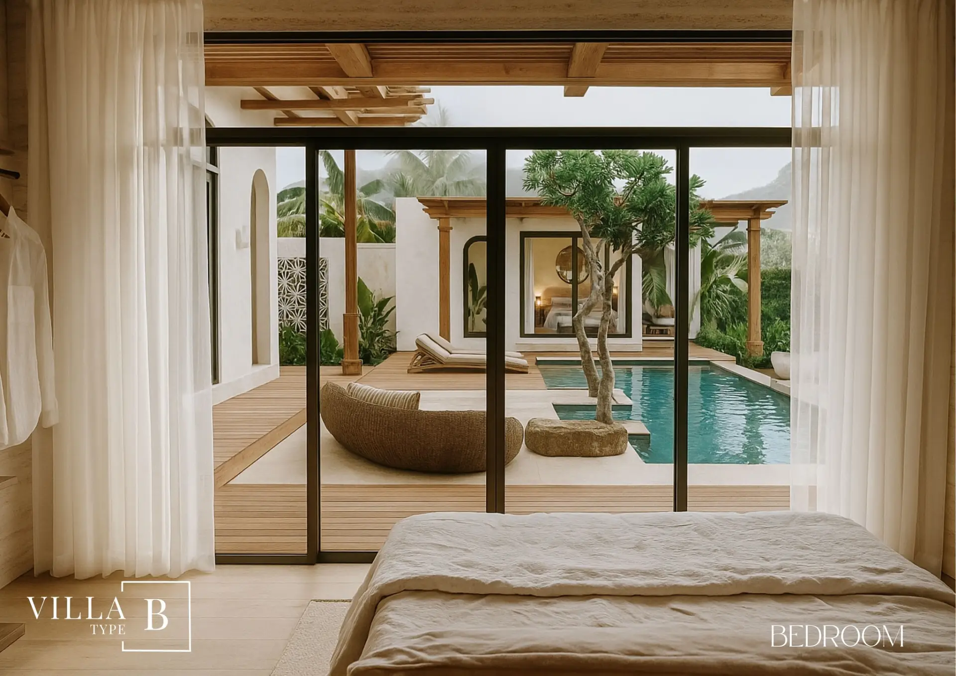 Villa Type B: Elegant 2-bedroom pool villas with 232 sqm of space, perfect for couples, small families, or as a rental property.