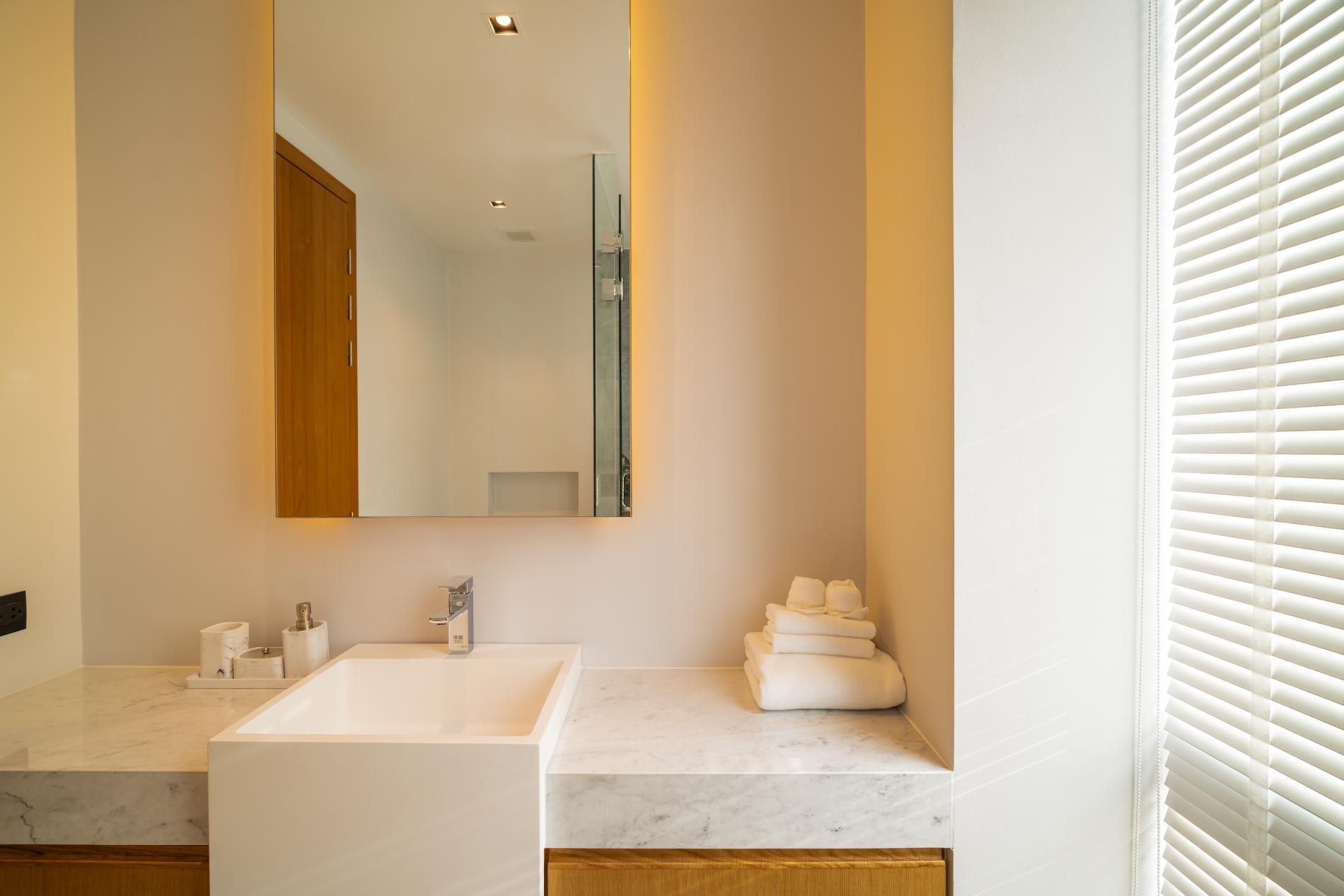 In Botanica Chalong Bay – Type E, the ground floor also houses the master bedroom, featuring a luxurious walk-in closet and an en-suite master bathroom. The layout ensures privacy and convenience, with direct access to the main terrace and swimming pool, making it feel like a private retreat within the home.