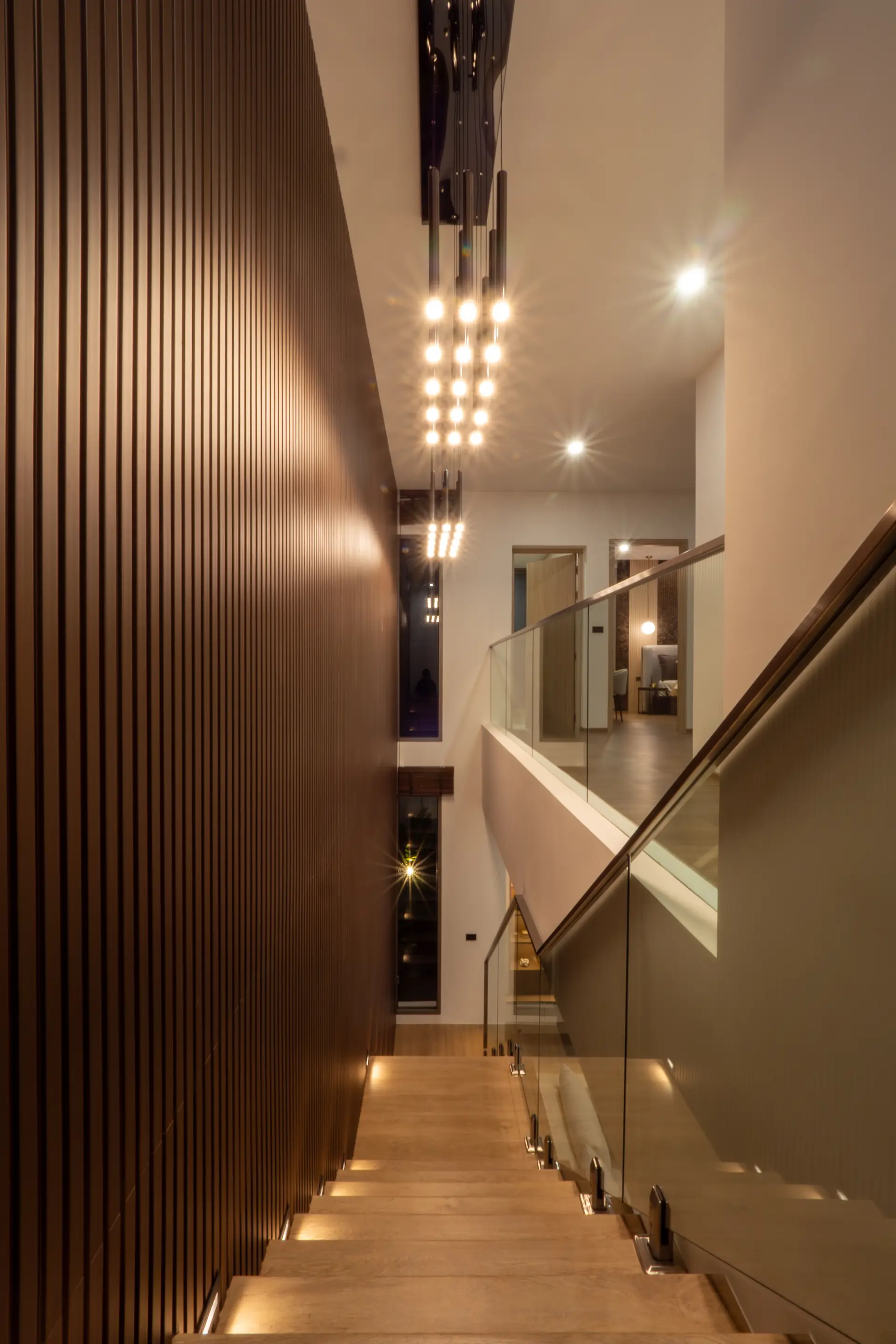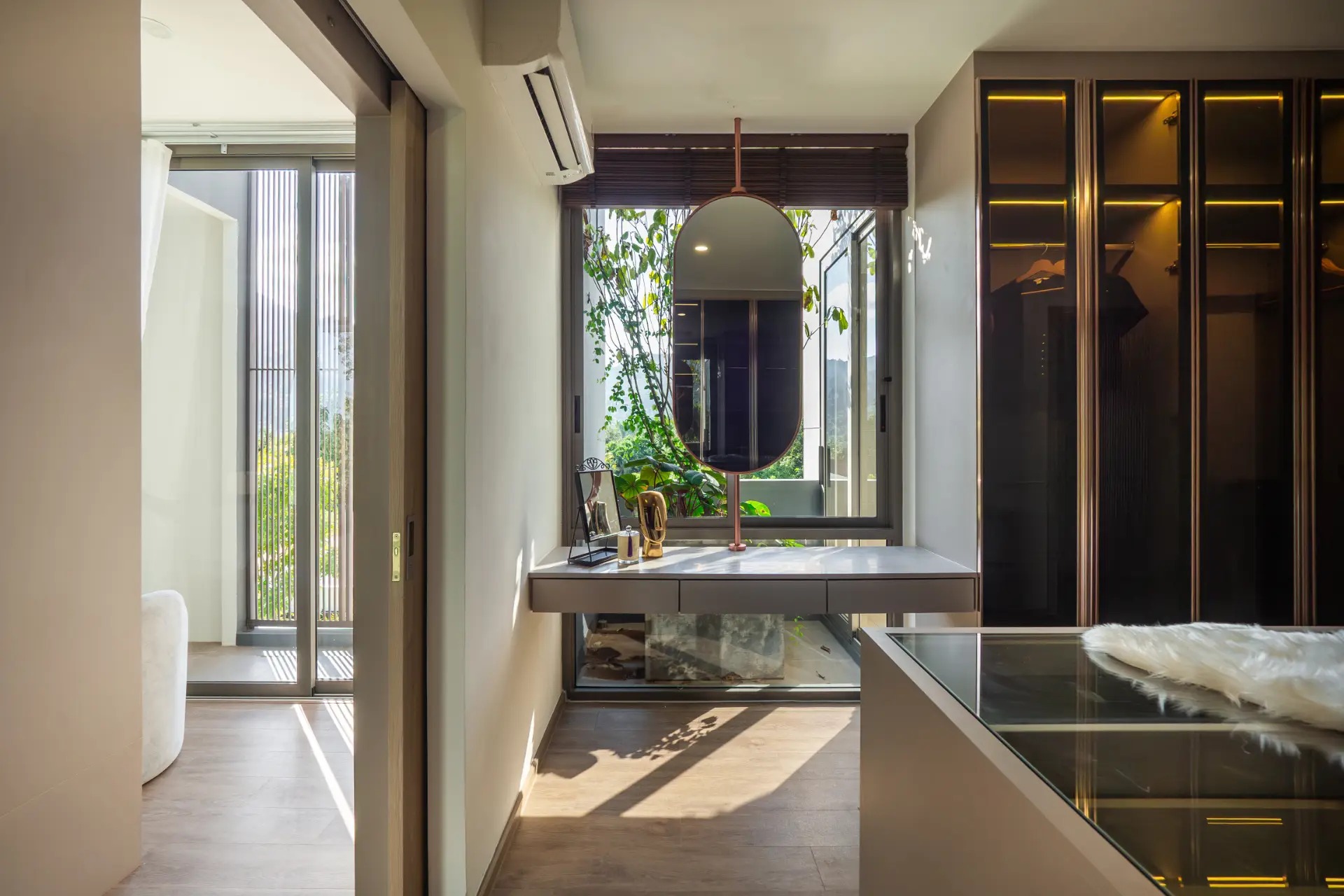 What truly distinguishes the master suite is its connection to a nature courtyard, illuminated through unique skylights that enhance natural airflow and reduce energy consumption. The thoughtful design emphasizes sustainability and well-being, allowing residents to experience tranquility and rejuvenation in their personal sanctuary. Additionally, a family area on the upper floor fosters deeper connection and bonding among family members.