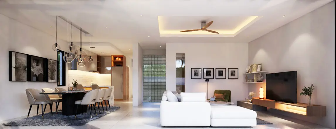 Whether you choose the 2-bedroom or 3-bedroom configuration, each villa delivers a smart layout that maximizes indoor and outdoor living. The bright open-plan living area connects seamlessly to the terrace and pool, creating a relaxing and inviting environment. Bedrooms are well-sized with modern bathrooms, while the private pool provides a perfect tropical escape at home.