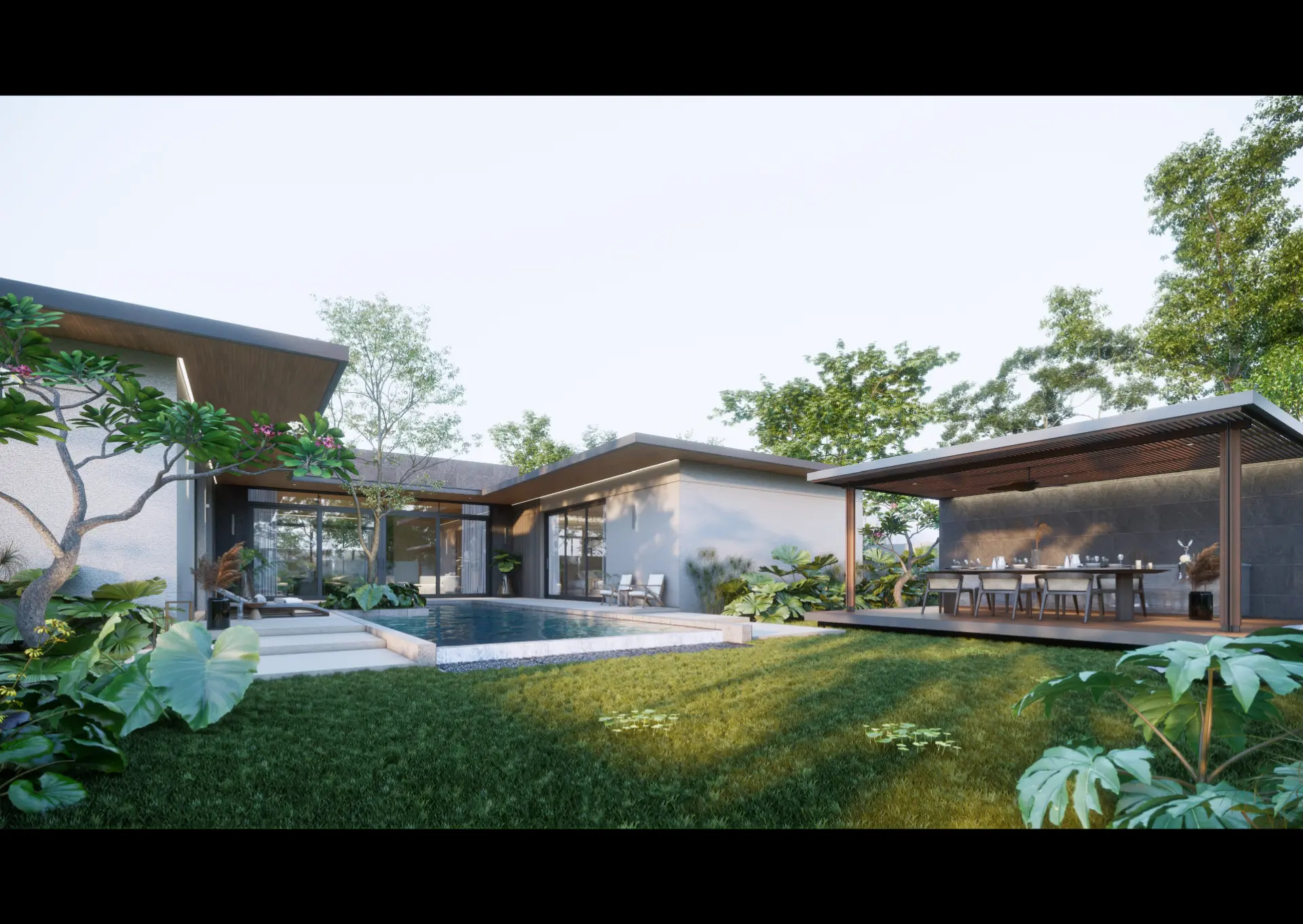 Luxury pool living: Private pool and landscaped terrace form the heart of each villa’s design.