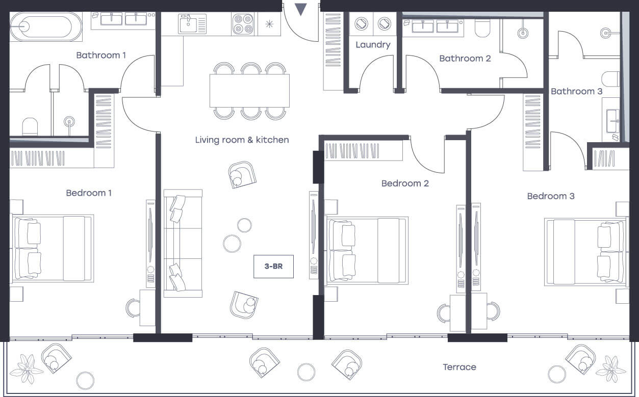 The first thing you’ll notice about the Layan Verde – Premium 3BR is the sense of space. At 145.8 sqm, the apartment offers a generous and thoughtfully arranged layout that separates the bedrooms from the living areas to ensure privacy and ease of use.