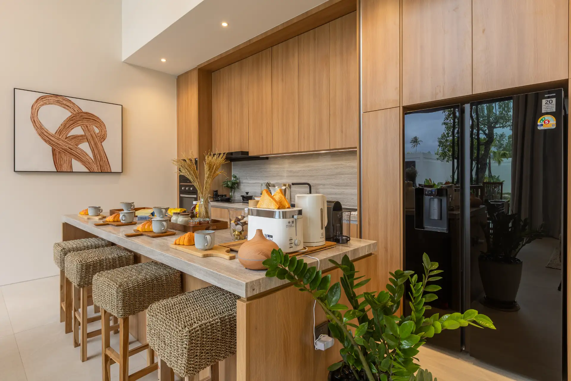 Mouana Grande Type B embraces indoor-outdoor living with a beautifully landscaped garden and an inviting private swimming pool. Whether you’re enjoying a quiet morning coffee on the terrace, relaxing in the outdoor living area, or soaking in the sun on the pool deck, this space offers an effortless escape from daily life.