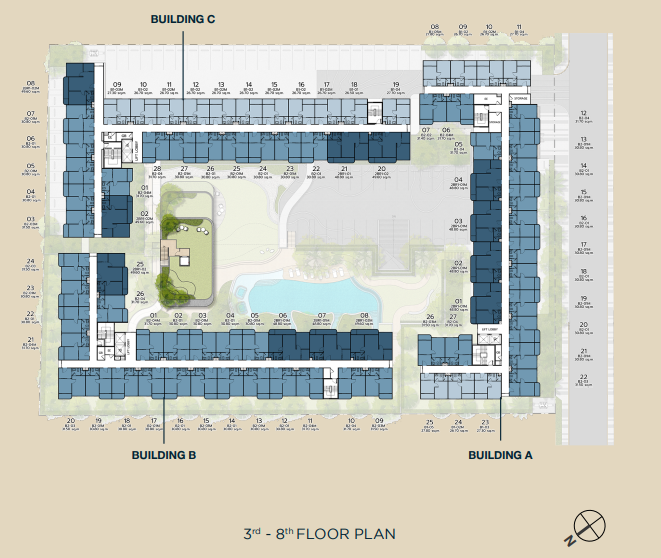Comprising 3 residential buildings (8 storeys each) and 1 exclusive clubhouse, the development features 585 smartly crafted residential units and 2 retail shops. Every aspect of Origin Place Centre Phuket is tailored for functionality, style, and comfort, making it ideal for first-time buyers, investors, digital nomads, and families alike.