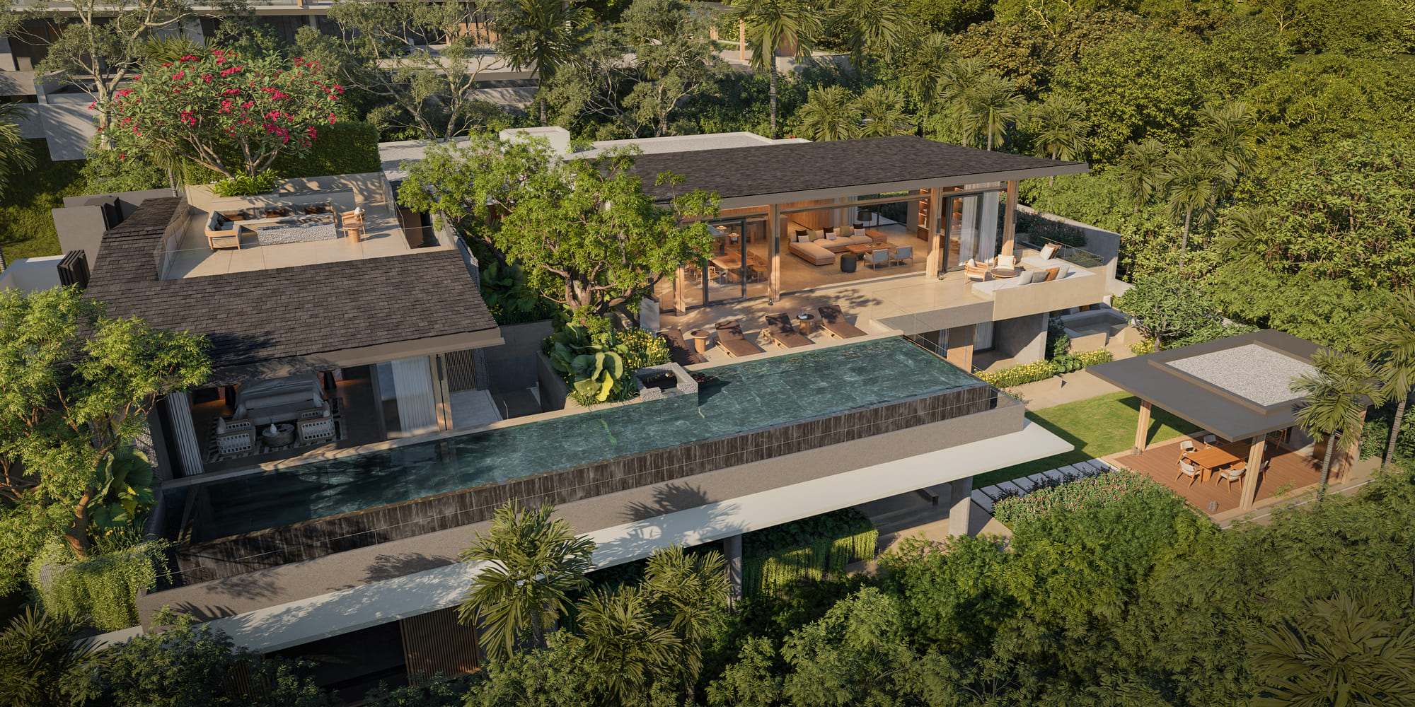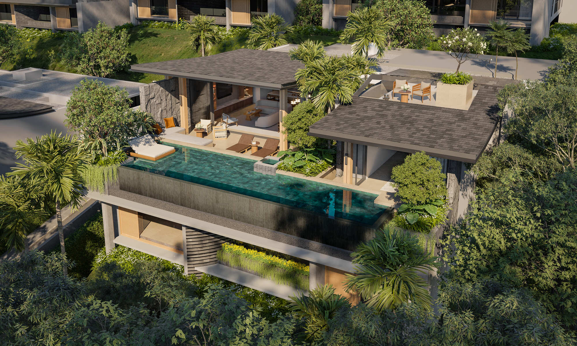 - Communal Pool: In addition to your private infinity pool, the shared pool area is perfect for socializing and relaxation.