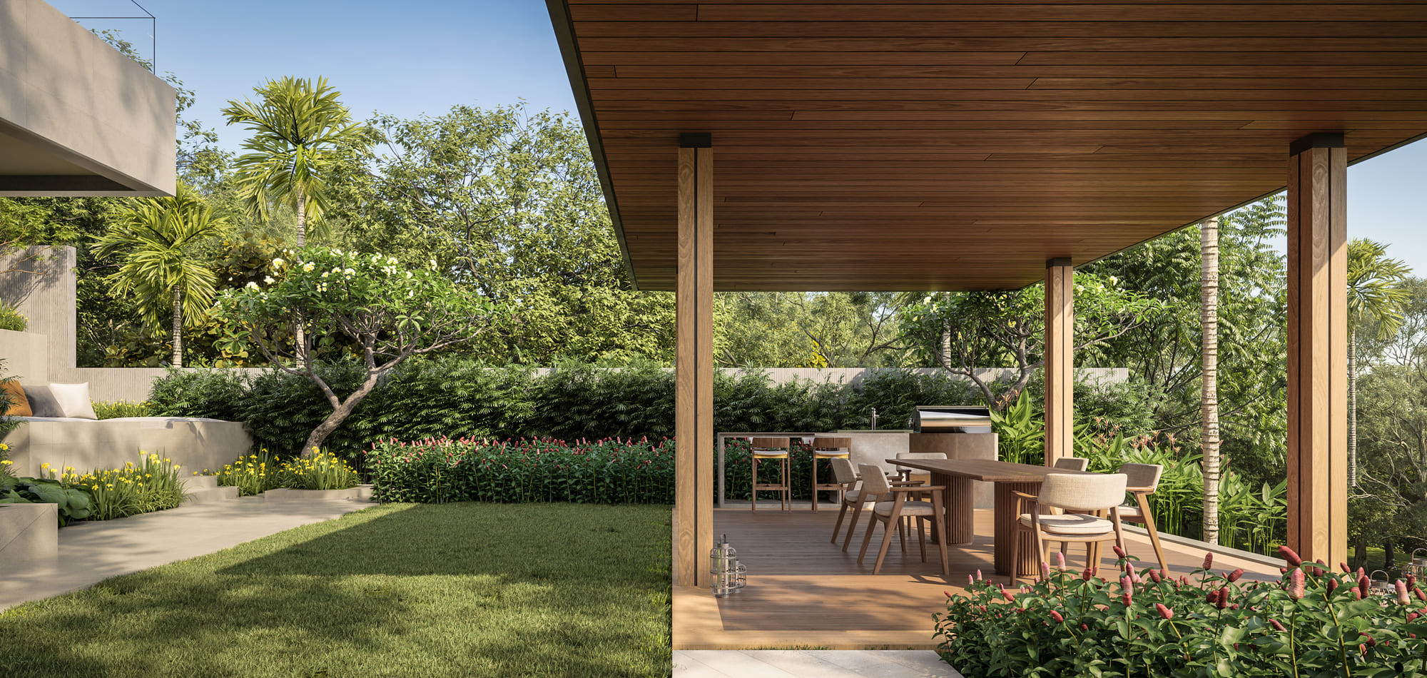 Pavara Vhana Type C villas have been designed to seamlessly blend indoor and outdoor living, allowing you to fully embrace Phuket’s tropical beauty. Whether you’re enjoying a quiet evening at home or entertaining guests, these villas provide a setting that is as functional as it is beautiful.