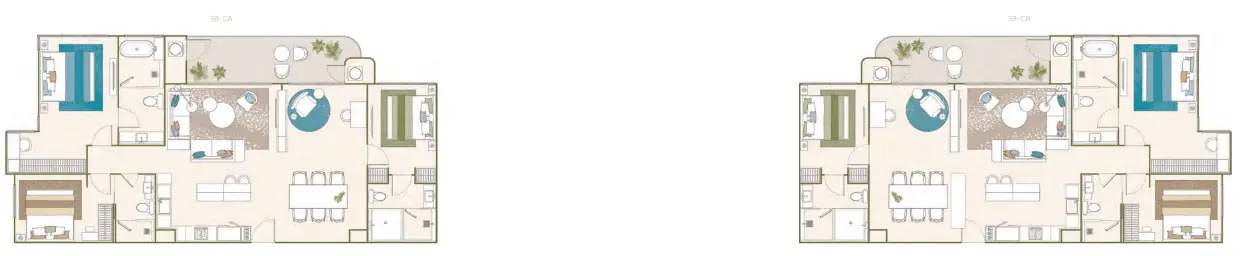Each bedroom is designed with comfort and privacy in mind. The master suite includes a private ensuite bathroom and access to a private balcony, offering beautiful views of the surrounding landscape or the tranquil pool area. The second and third bedrooms are versatile spaces — ideal for children, guests, or as a home office.