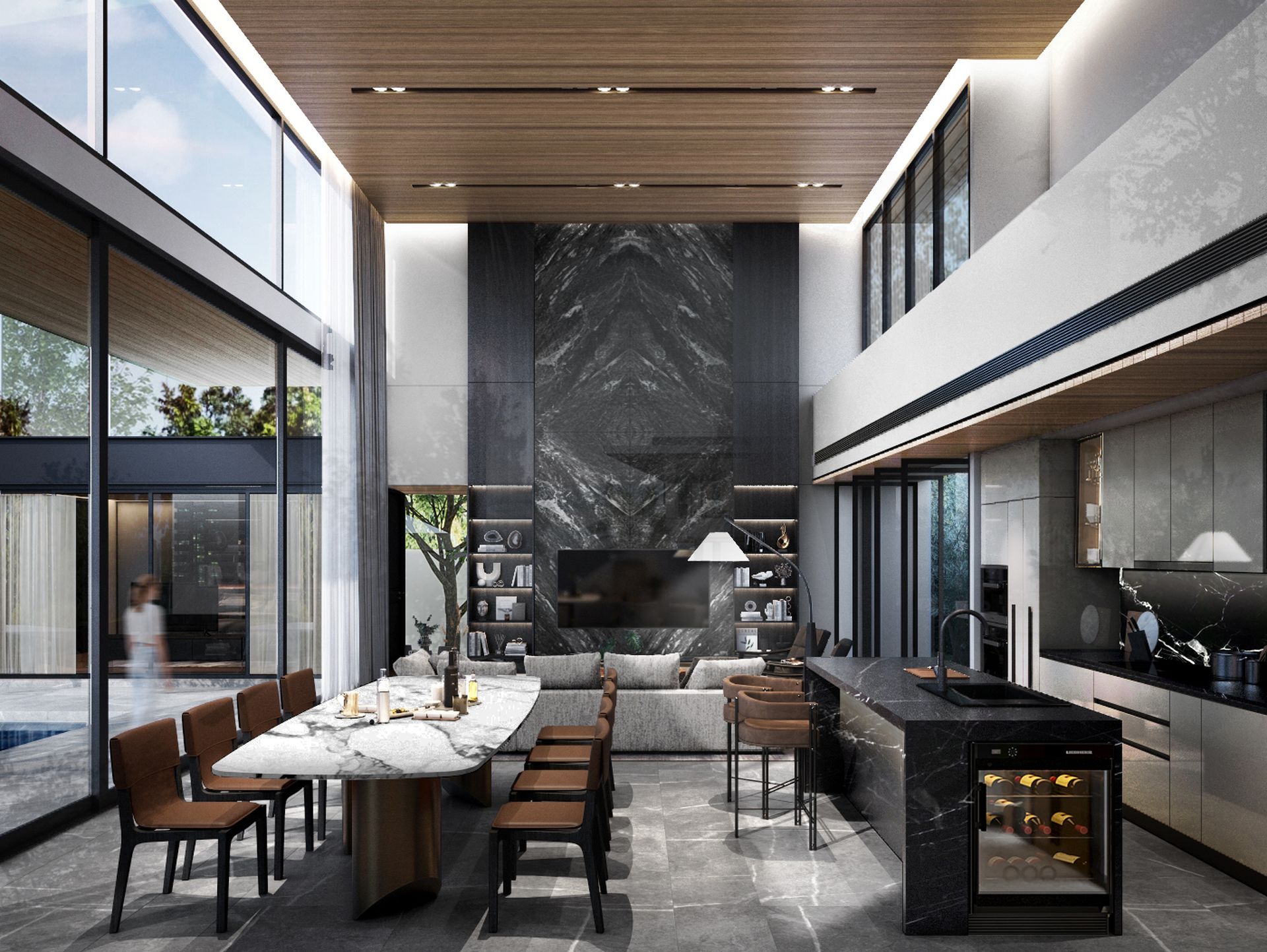 The Onyx Villa is designed with an open-plan concept that maximizes space, natural light, and airflow. The seamless integration of floor-to-ceiling windows, high ceilings, and natural materials creates a bright and airy ambiance, enhancing the connection between indoor and outdoor living.