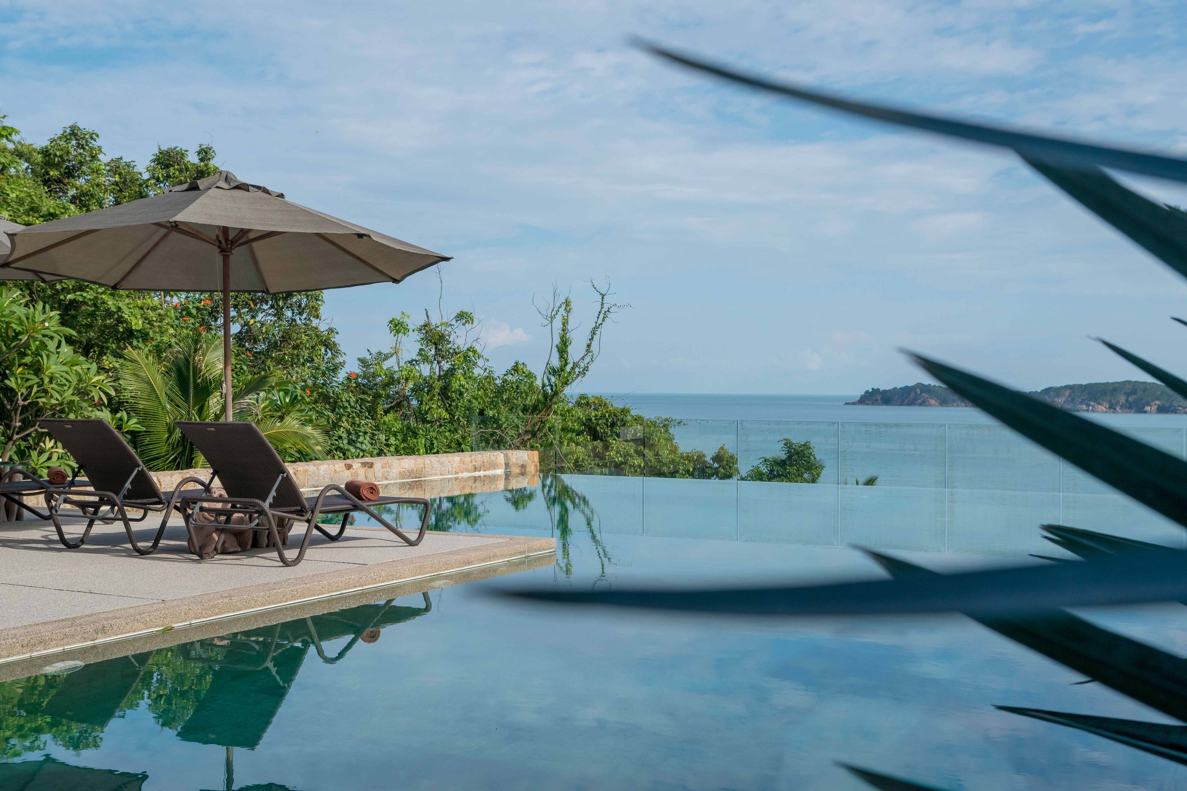 A large infinity-edge swimming pool overlooking the Gulf of Thailand.