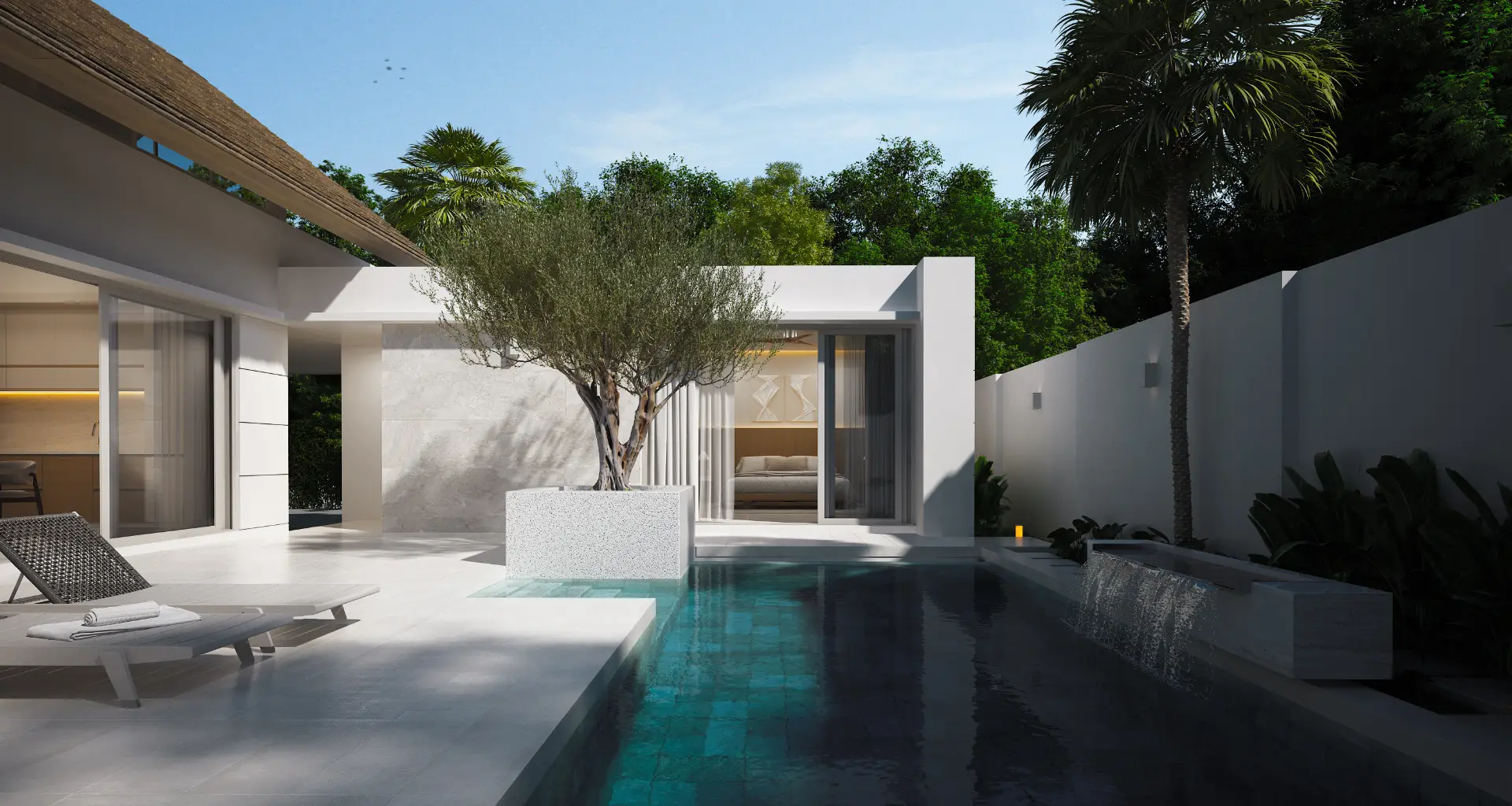 The result is a beautifully efficient villa layout that blends minimalism, comfort, and tropical living.