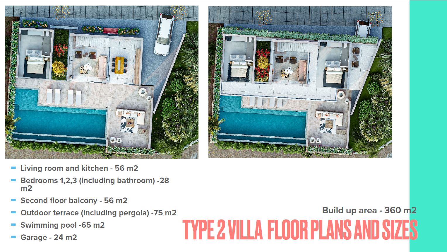 For those seeking more space and grandeur, Villa B offers a larger 360 square meters of build-up area, also spread across two storeys. This villa includes: