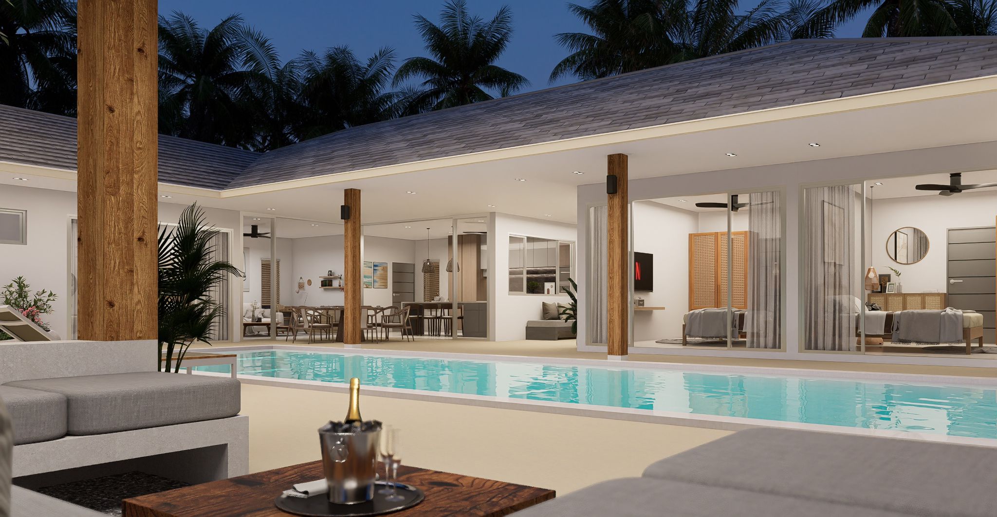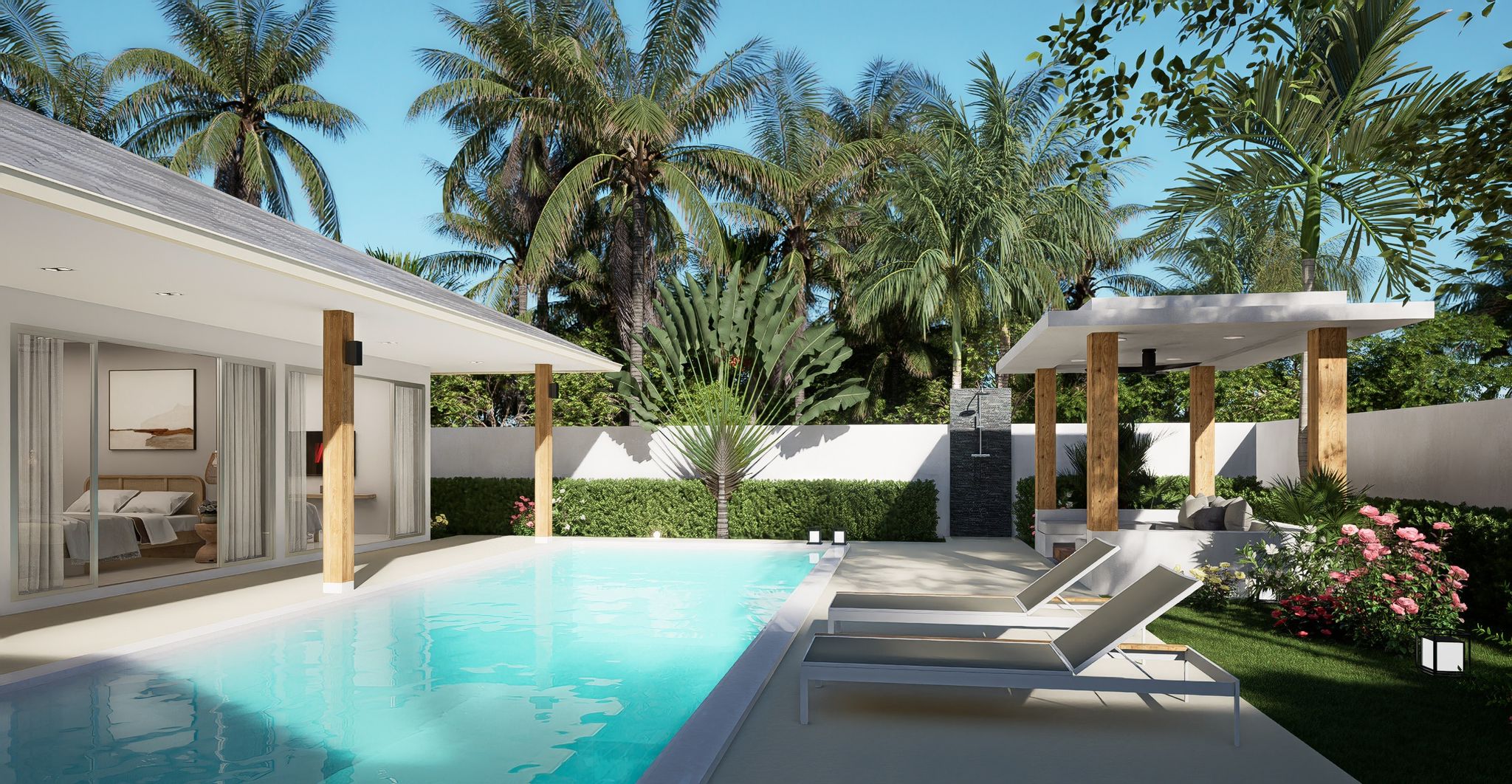 The villas at See by Tropical Life Residences embrace Koh Samui’s tropical charm, featuring expansive outdoor areas designed for relaxation and entertainment. Private infinity pools blend seamlessly with the horizon, while sun decks, shaded pavilions, and landscaped gardens create the perfect setting for enjoying the island’s year-round sunshine.