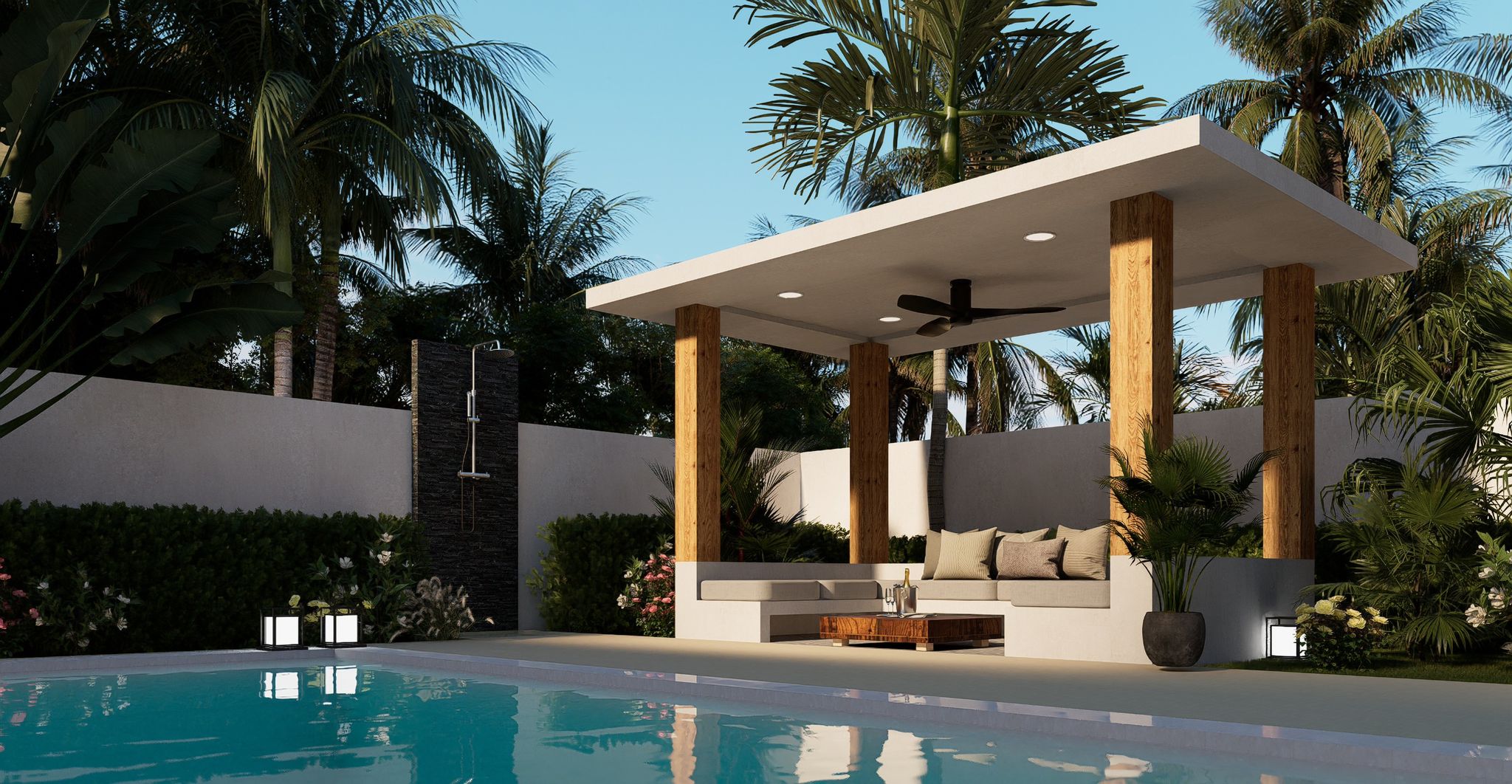 Each villa come with private garden and private swimming pool with option exterior Sala and interior Sala too.