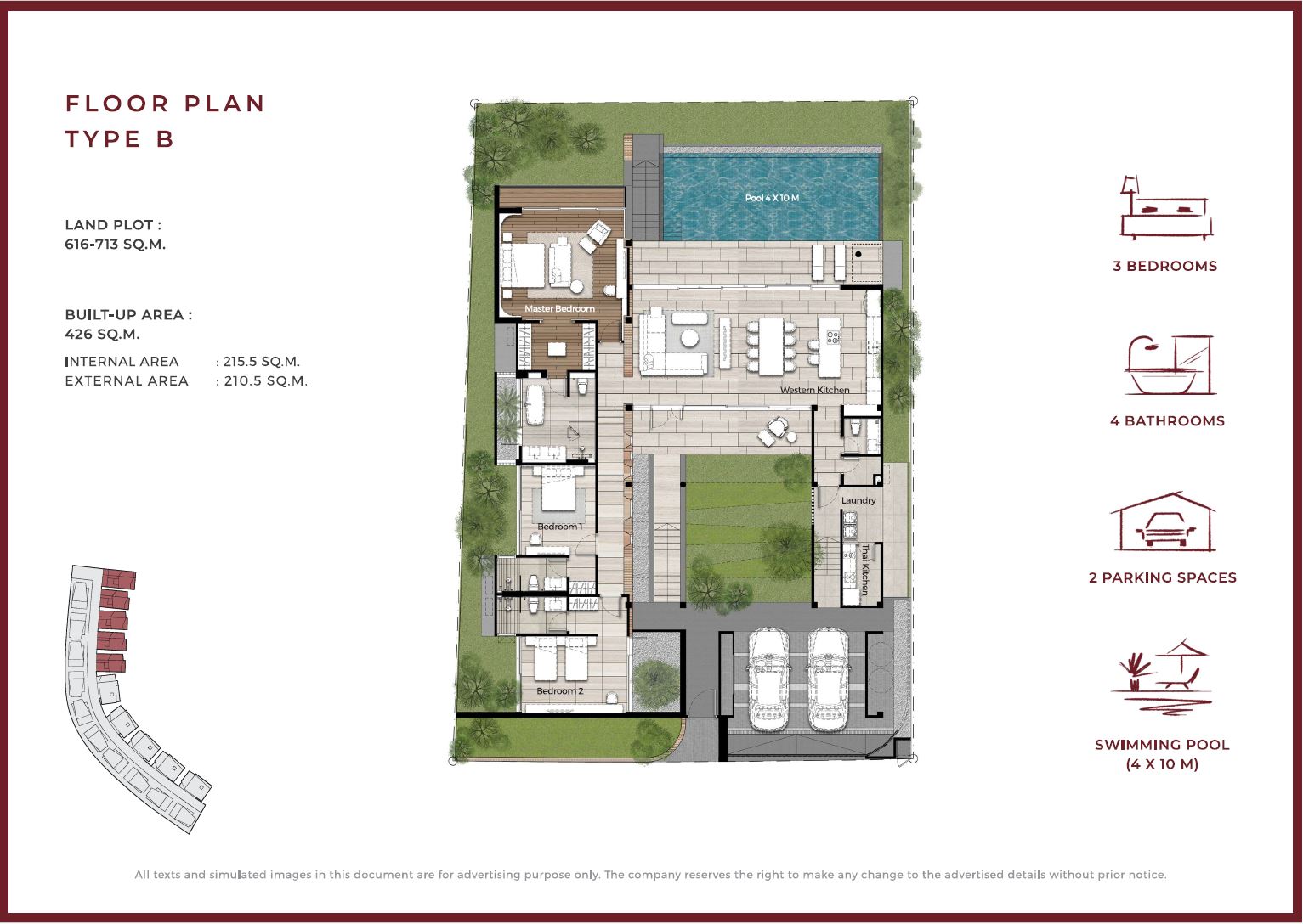 Set on expansive land plots ranging from 616 to 934 square meters, these villas provide ample outdoor space for gardens, recreation, and private leisure. The large plots ensure privacy while immersing residents in the lush tropical surroundings that make Phuket so enchanting.