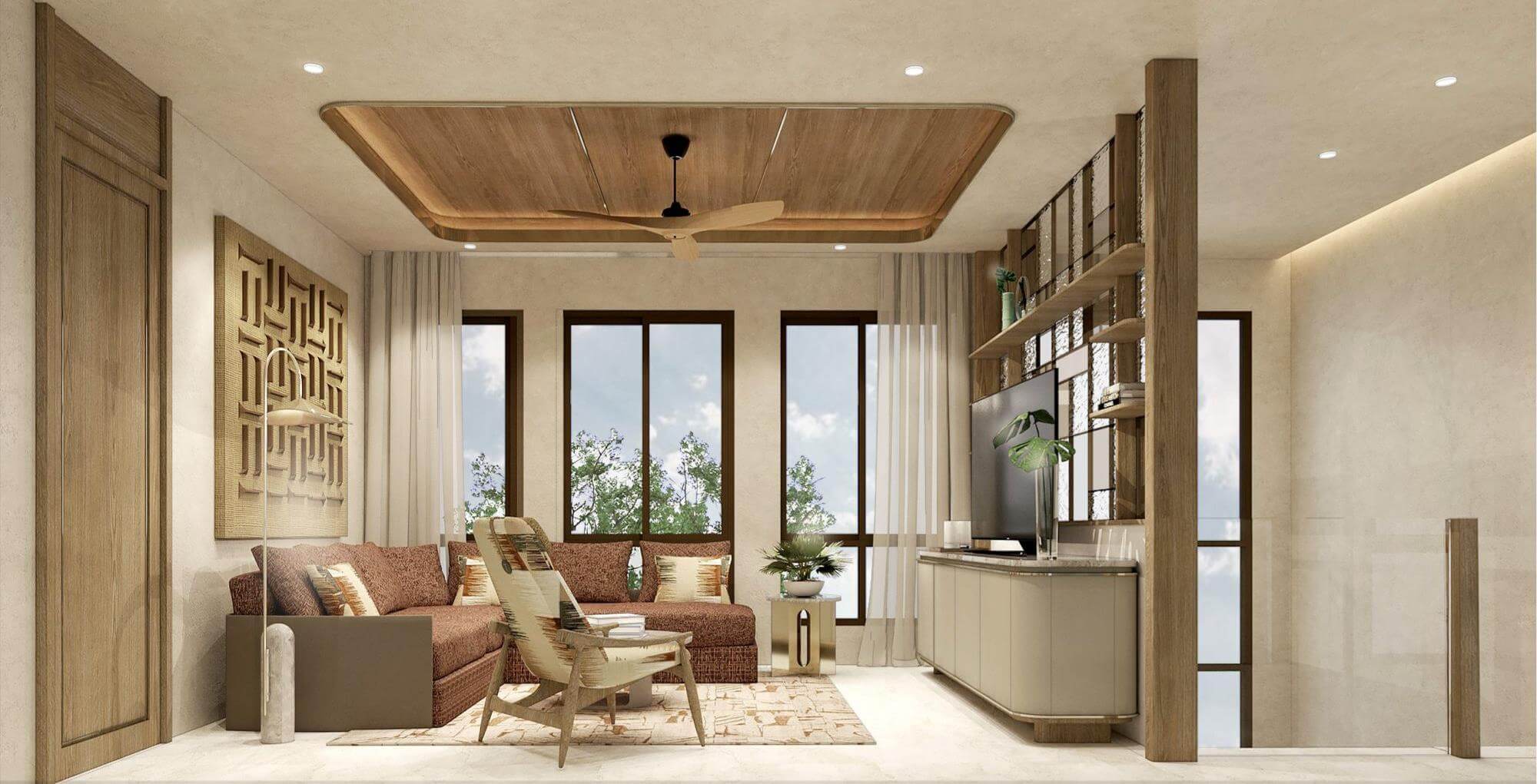 From the moment you enter, you’re welcomed into bright, airy interiors enhanced by full-height glass windows and warm wooden accents. The architectural design, led by the acclaimed Habita Architects, features clean lines and natural textures, while the interior styling—courtesy of Studio Chemistri—adds a modern yet homely touch.