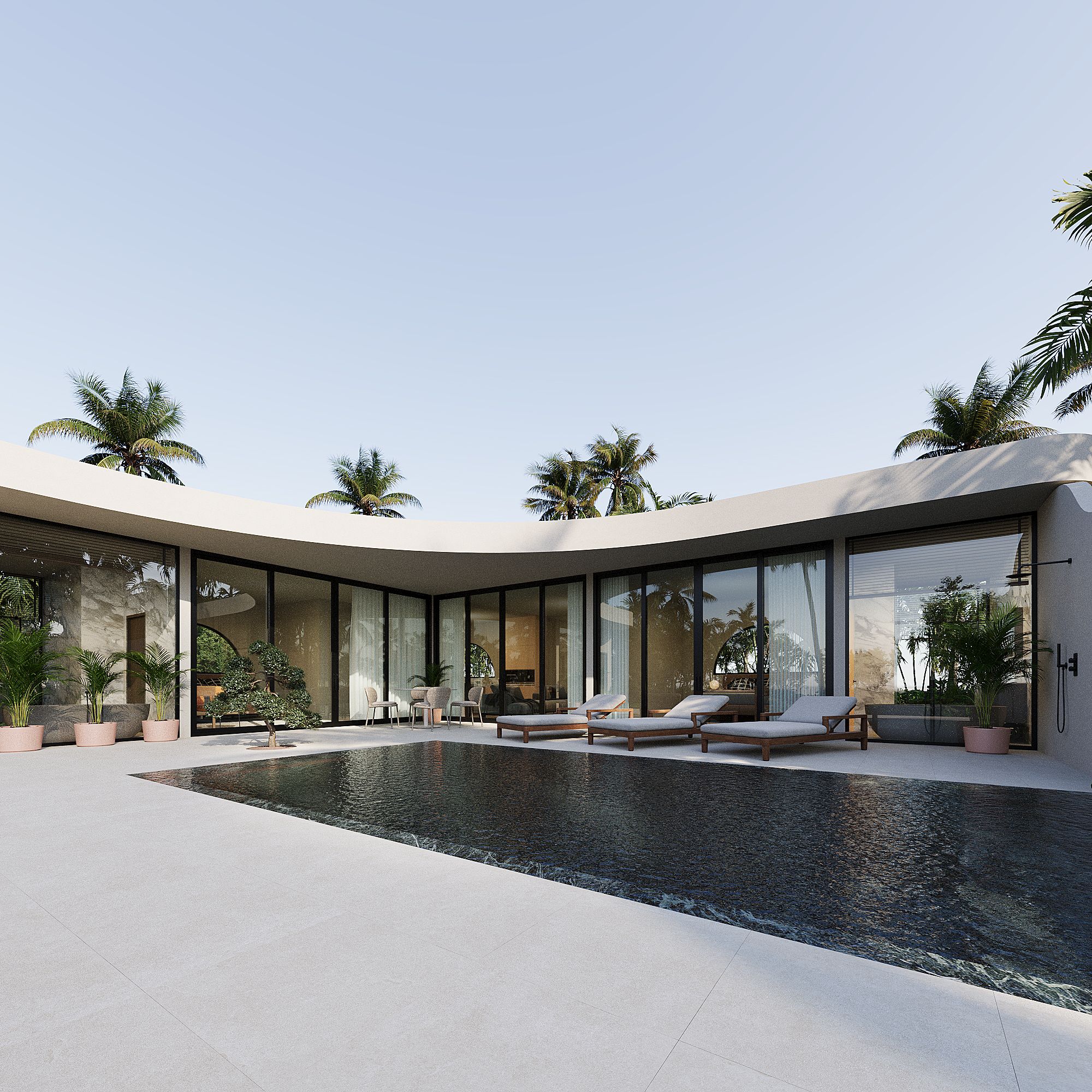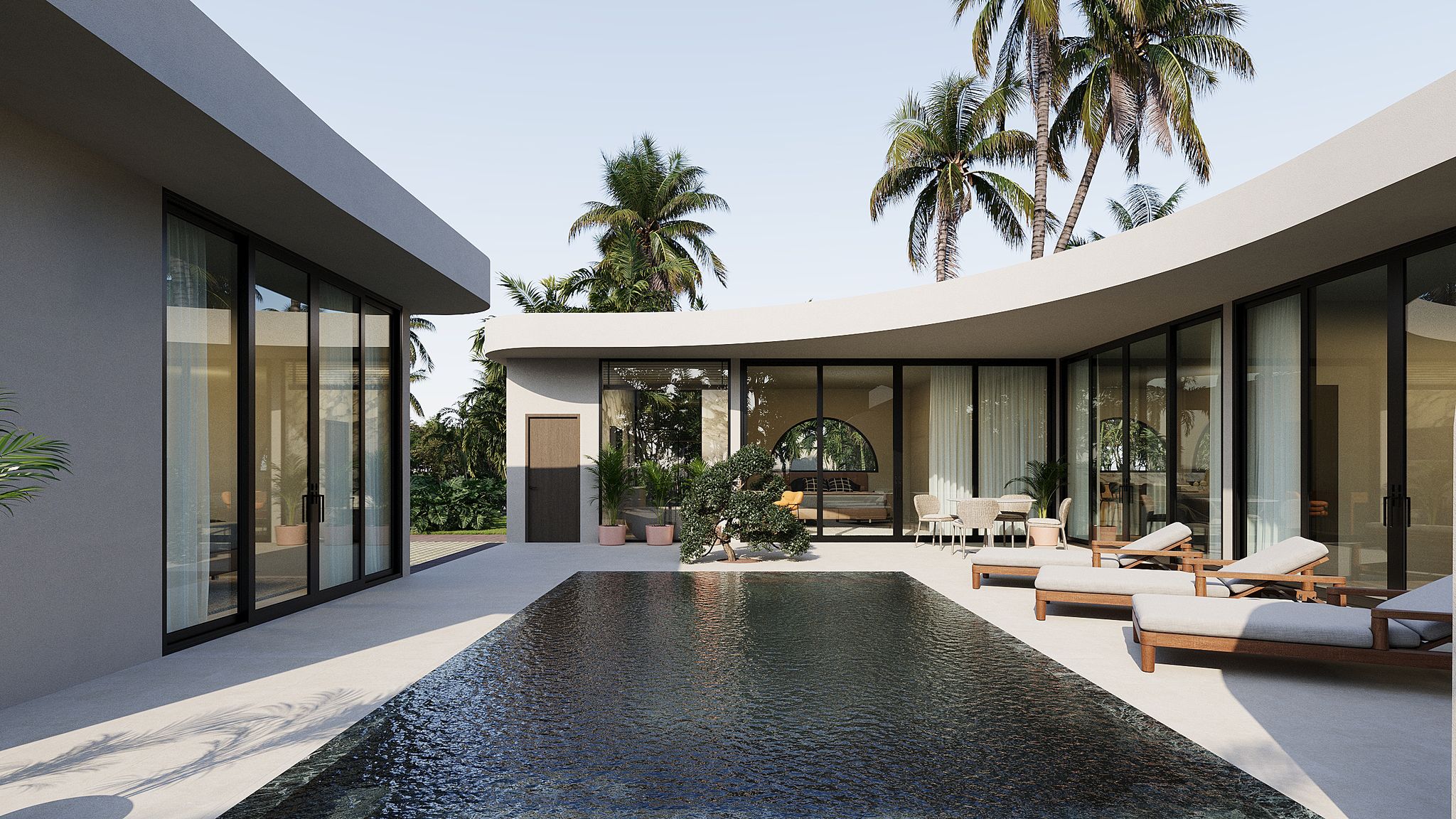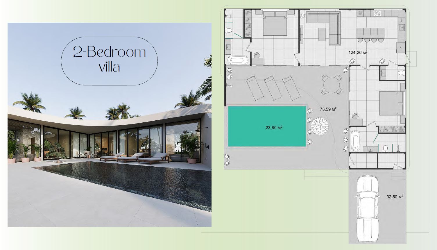2-Bedroom Villas: Living space of 124.3 sqm with larger pool and outdoor spaces