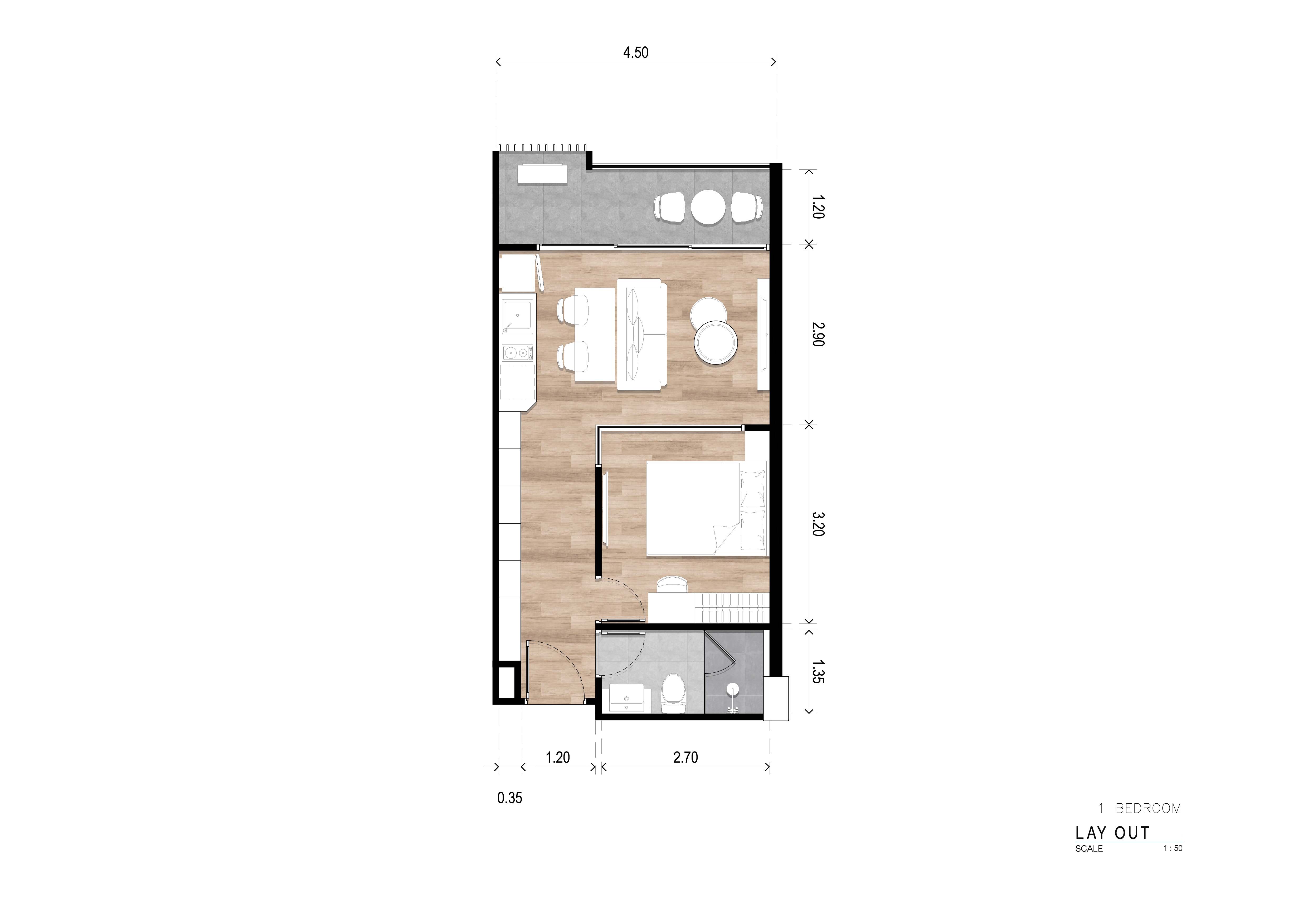 The 1-bedroom unit at The Balance By the Beach spans 37.98 square meters and features a smart layout that maximizes comfort and functionality. Every detail has been carefully considered to provide a sense of spaciousness while maintaining a cozy, homey feel.
