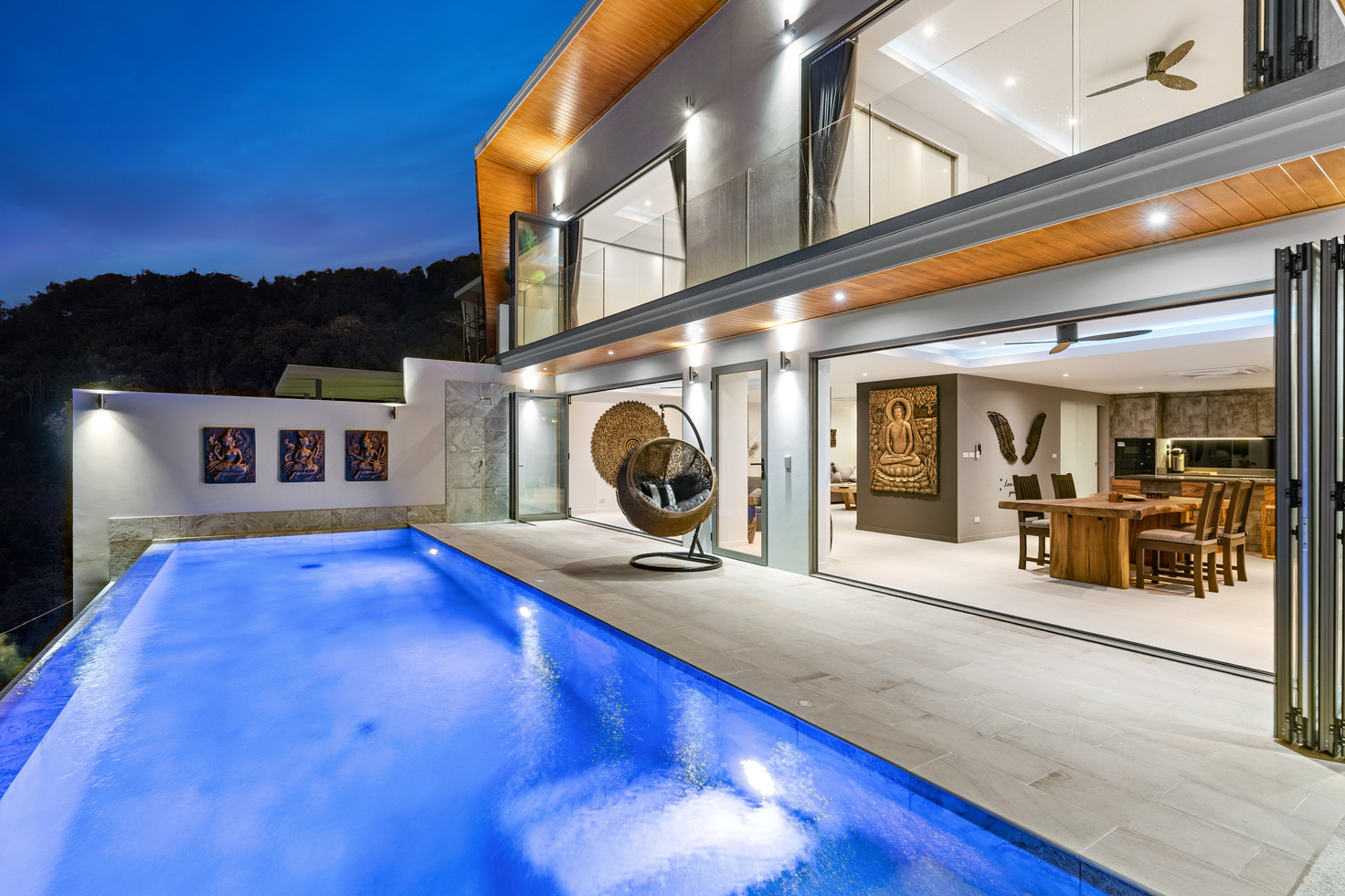✔ Private infinity pool with sun deck and outdoor lounging areas.