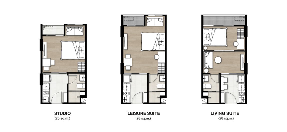 The Ocean Suite comes with the option for fully furnished packages, designed to reflect a blend of modern and tropical aesthetics. Every inch of this 47 sq.m. suite is designed to maximize comfort and functionality—from sleek built-in storage to elegant flooring, premium kitchen fittings, and ambient lighting. Neutral color palettes create a soothing ambiance, allowing you to personalize your space while enjoying high-end finishes.