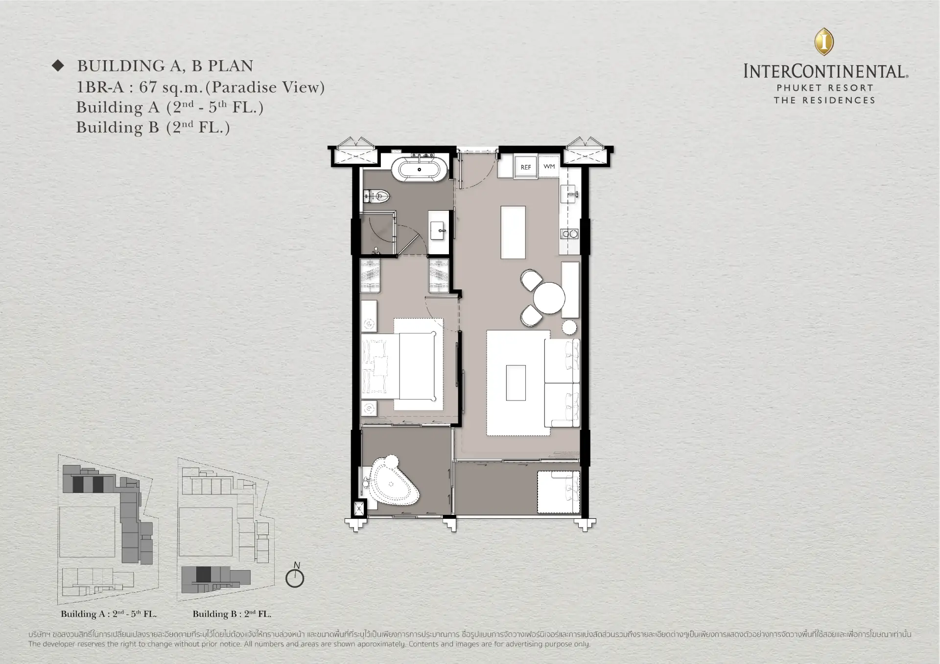 The 1-bedroom residence at The Residences at InterContinental Phuket Resort represents the pinnacle of refined luxury living along Phuket’s exclusive west coast. Designed for individuals, couples, or investors seeking a harmonious blend of comfort, sophistication, and breathtaking natural surroundings, this residence is a true retreat within one of the island’s most prestigious branded developments. Offering between 59 to 67 sqm of impeccably planned living space, the 1BR unit provides a seamless living experience enhanced by world-class amenities and the exceptional hospitality that InterContinental is globally renowned for.