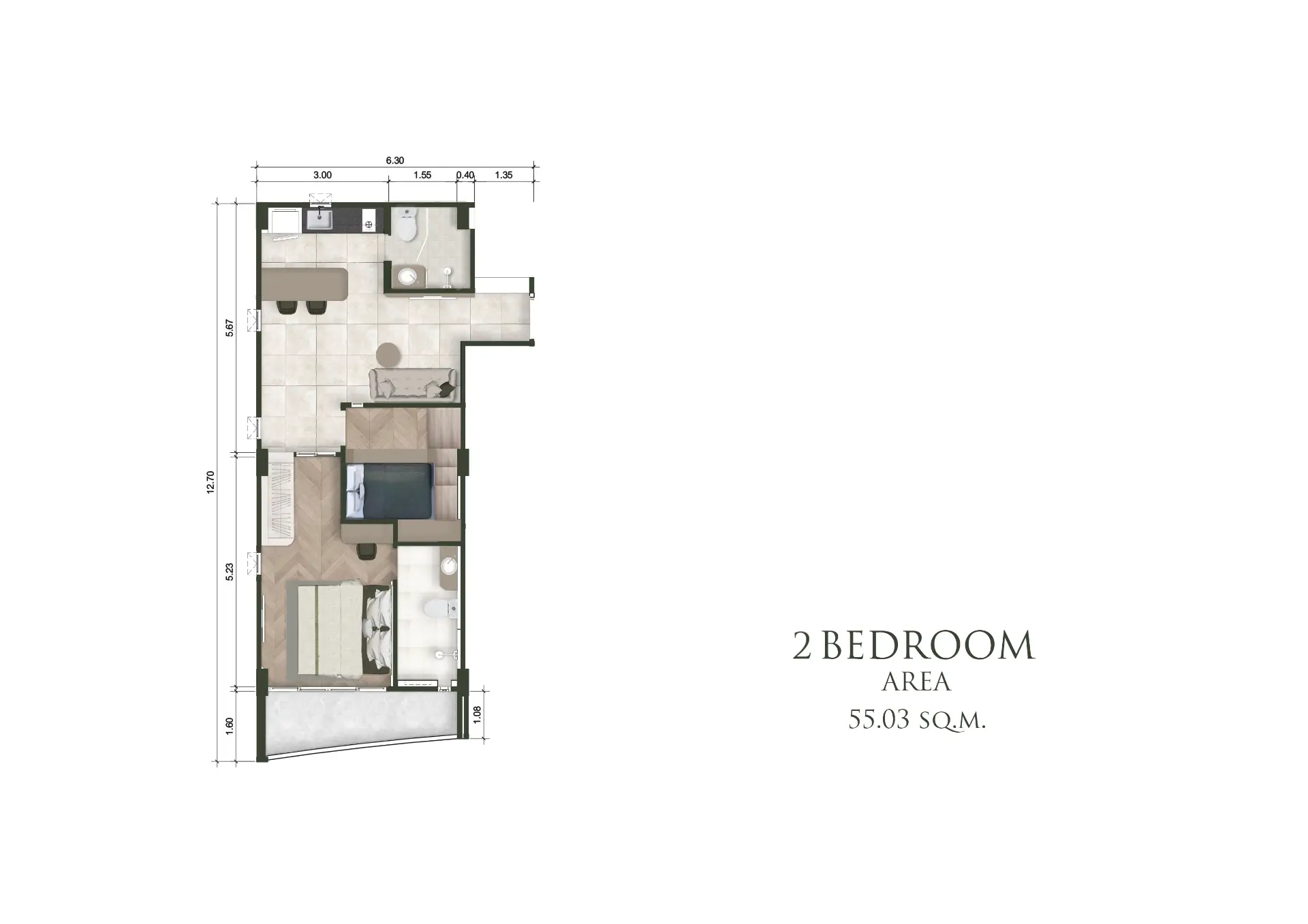 A Spacious 2-Bedroom Layout Designed for Modern Living
