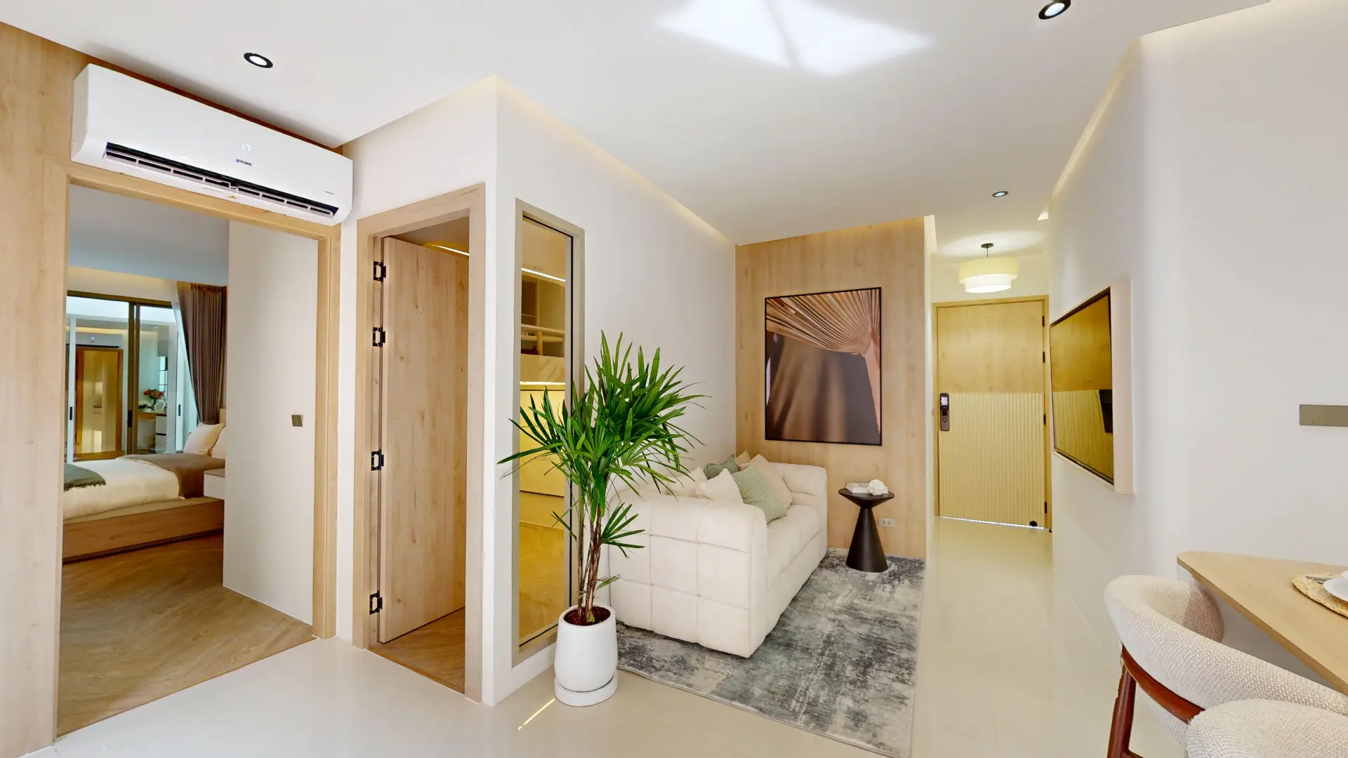 The 2-bedroom apartment at The Trees Residence Phuket offers generous living areas, making it ideal for small families, couples wanting extra space, remote workers, or long-term holidaymakers. The well-planned layout emphasizes relaxation, functionality, and connection to nature.