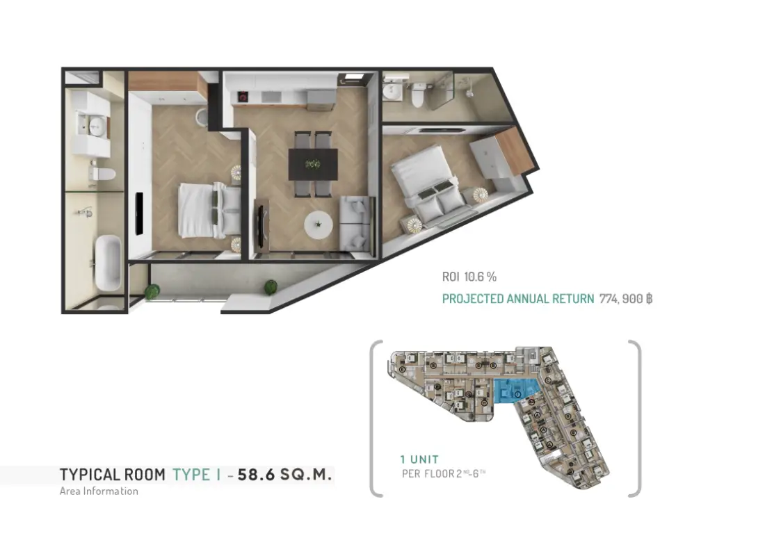 With prices starting from 9.8 Million THB, the Zero Bang Tao – 3BR is a rare opportunity to secure a large, eco-friendly condominium in one of Phuket’s most desirable neighborhoods. Combining sustainability, profitability, and luxury, this is more than just a home—it’s a future-proof investment in paradise.