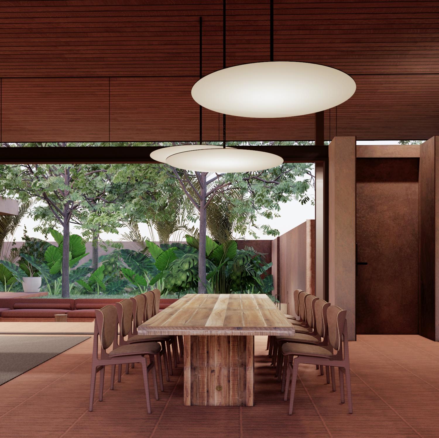 Expansive living spaces that flow into nature, enhanced by large, glass-paneled windows and natural textures