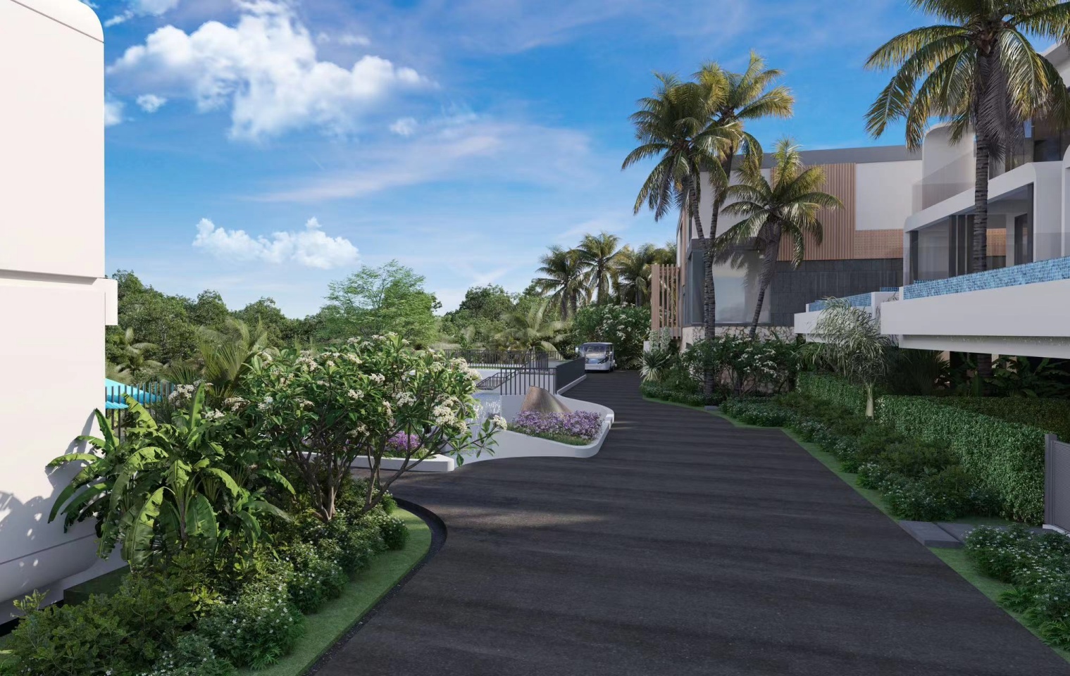 The architectural design combines modern elegance with tropical sophistication, using natural materials, clean lines, and premium finishes to create luxurious, light-filled spaces.