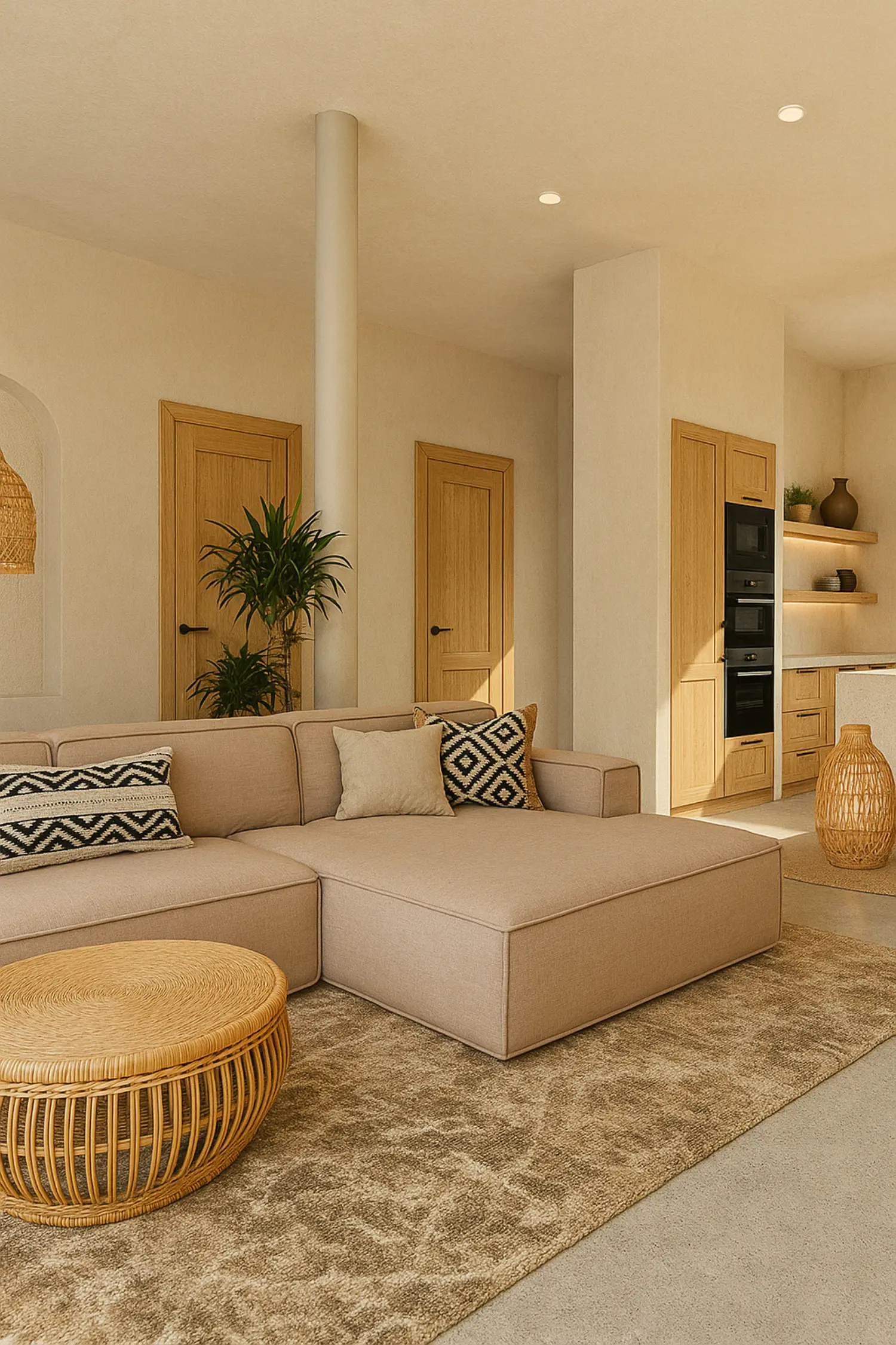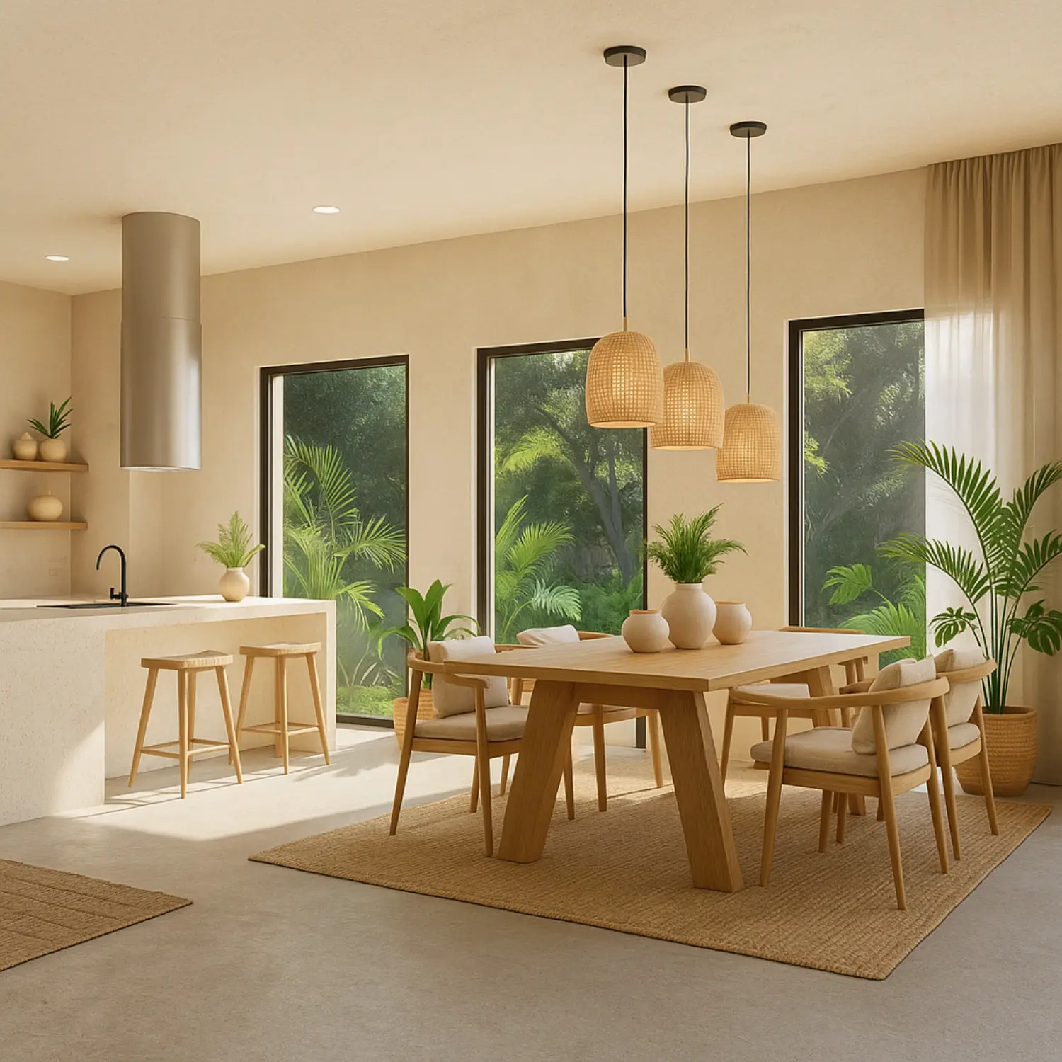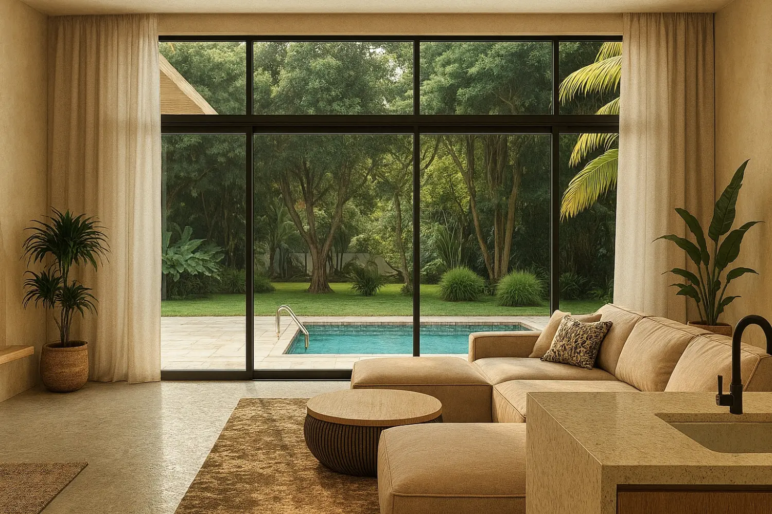 Spacious Interiors: Open-plan living and dining with floor-to-ceiling glass for natural light.