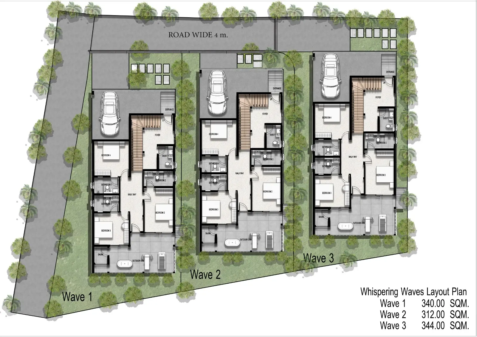 With a total built-up area of 304 sqm, every villa at Whispering Waves offers a perfect mix of indoor luxury and outdoor tropical living.