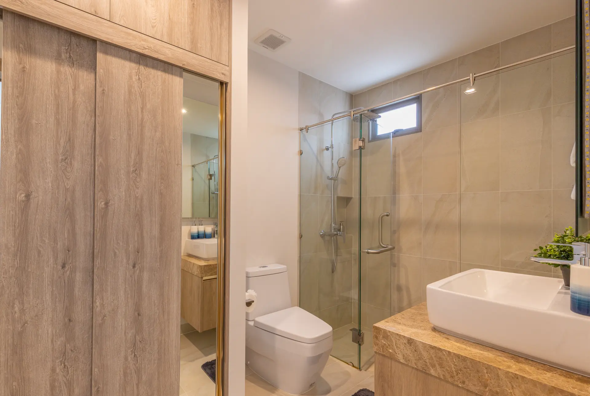 Zenithy La Ville integrates quality materials and smart design elements throughout the villas. Built-in natural marble cabinetry, sleek aluminum-framed windows, wood-texture tiles, and stone-texture slip-resistant tiles reflect the development’s commitment to both style and durability. The private saltwater swimming pool, double carport, mezzanine floor, guest restroom, and spacious storage areas further elevate the comfort and functionality of the homes.