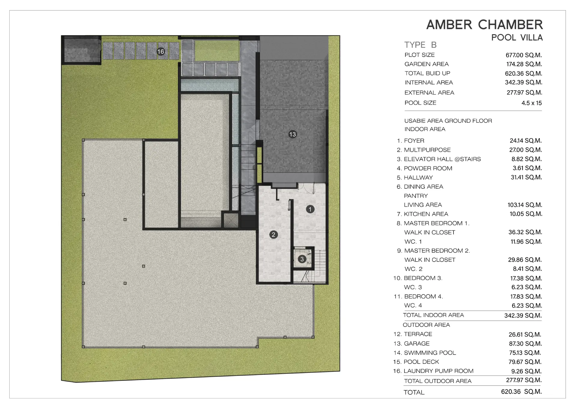 Every corner of Amber Bliss is carefully designed to provide functionality without compromising aesthetics — from the 85 sq.m garage and service room to the multipurpose area, elevator space, and storage zones.