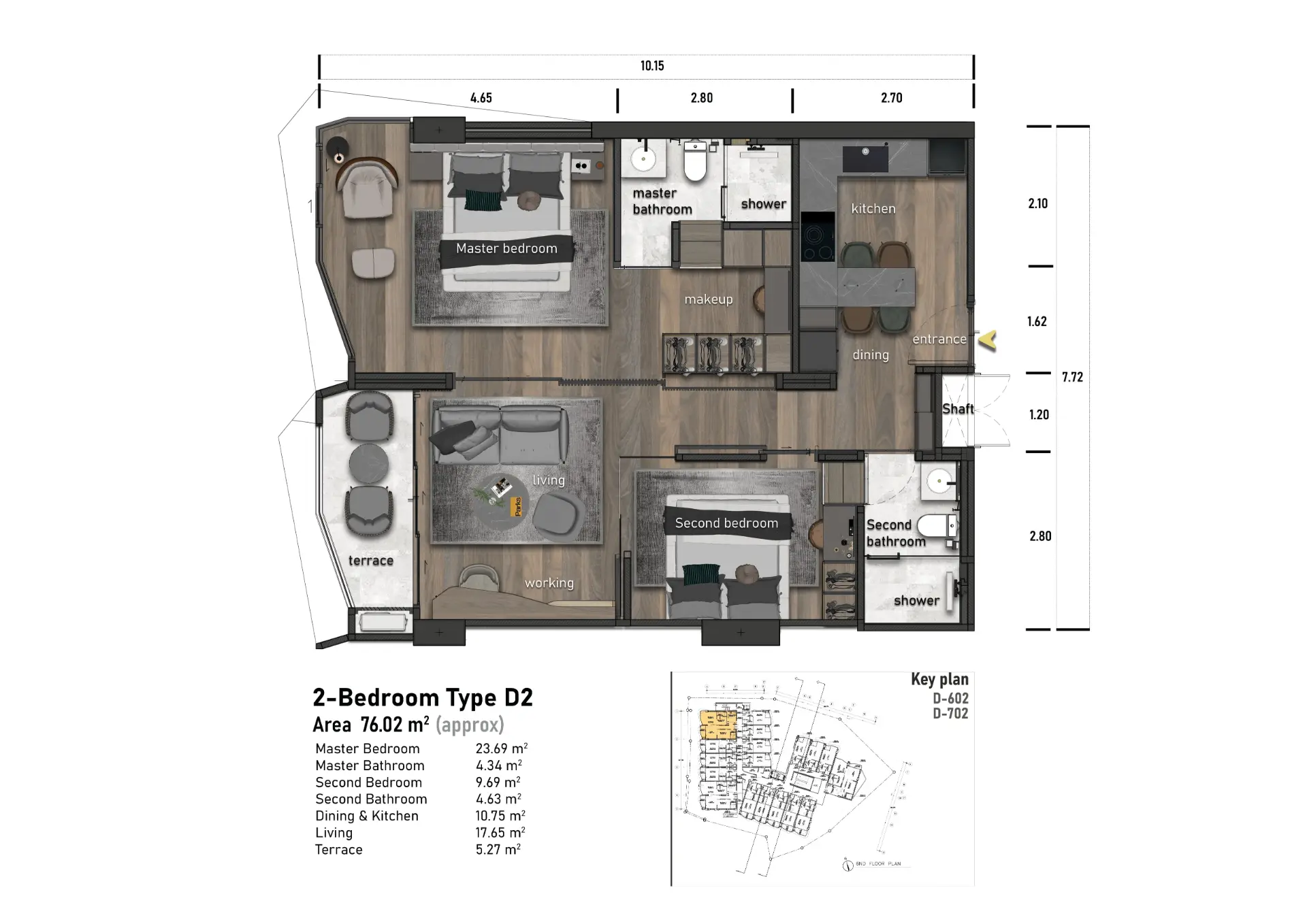 Situated on a peaceful hillside just minutes away from the golden sands of Kata Beach, Ashiyana Heights captures the essence of relaxing, resort-style living. The 2-bedroom units offer expansive floor areas ranging from 75.88 sqm to 76.68 sqm, giving residents a remarkable sense of space, privacy, and functionality. Each room is carefully designed to maximize natural light, enhance comfort, and encourage an effortless flow throughout the home. These thoughtfully crafted units make everyday living a pleasure and transform a simple residence into a calming sanctuary.
