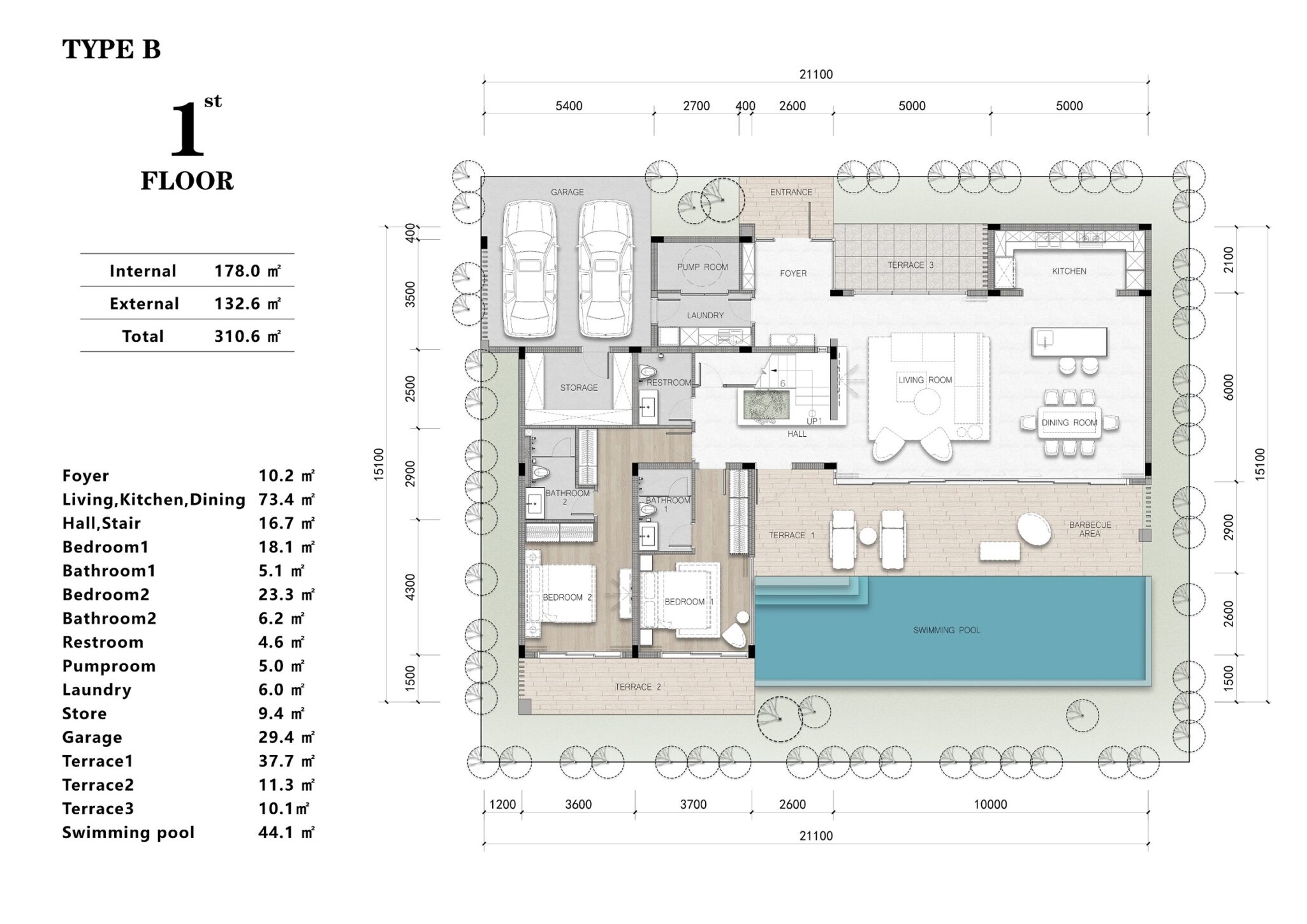 Designed to cater to the needs of modern families, Villa Type B offers an array of spaces that balance luxury and practicality: