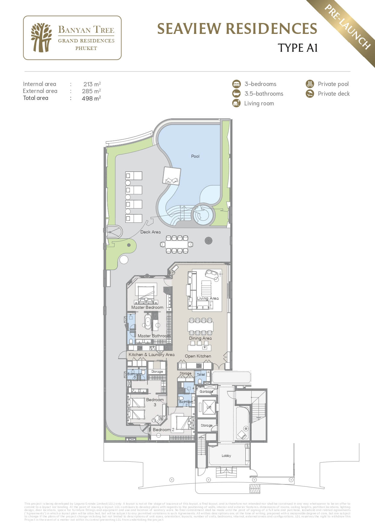 Welcome to Banyan Tree Beach Residences Sirena – Type A, where luxurious island living takes on a new meaning. Nestled in the prestigious gated community of Laguna Phuket, this expansive 498-square-meter residence offers the perfect blend of architectural excellence, tropical serenity, and coastal sophistication. With three spacious bedrooms, three and a half bathrooms, and uninterrupted views of the Andaman Sea, Type A is a sanctuary of comfort and refinement for those who expect the very best.