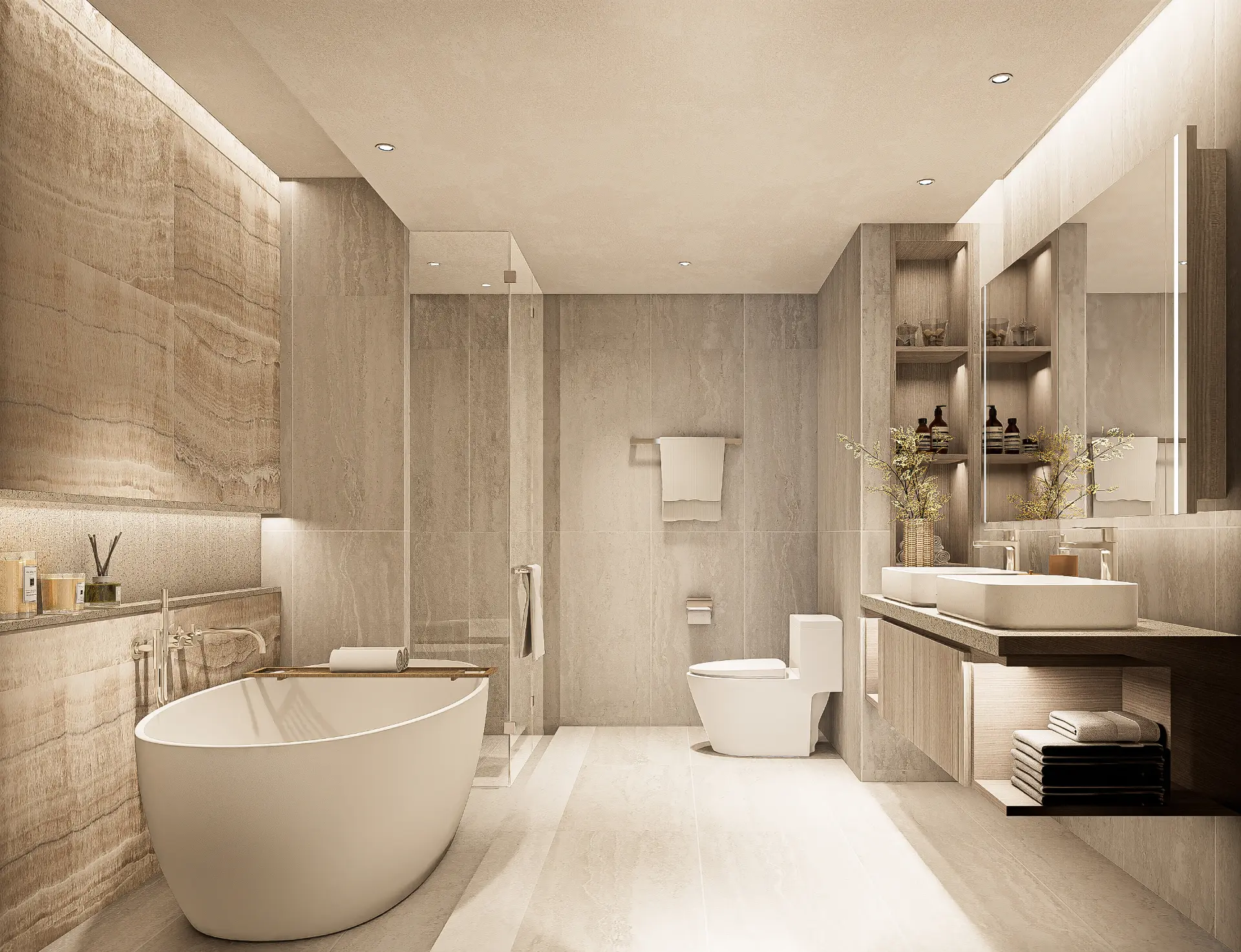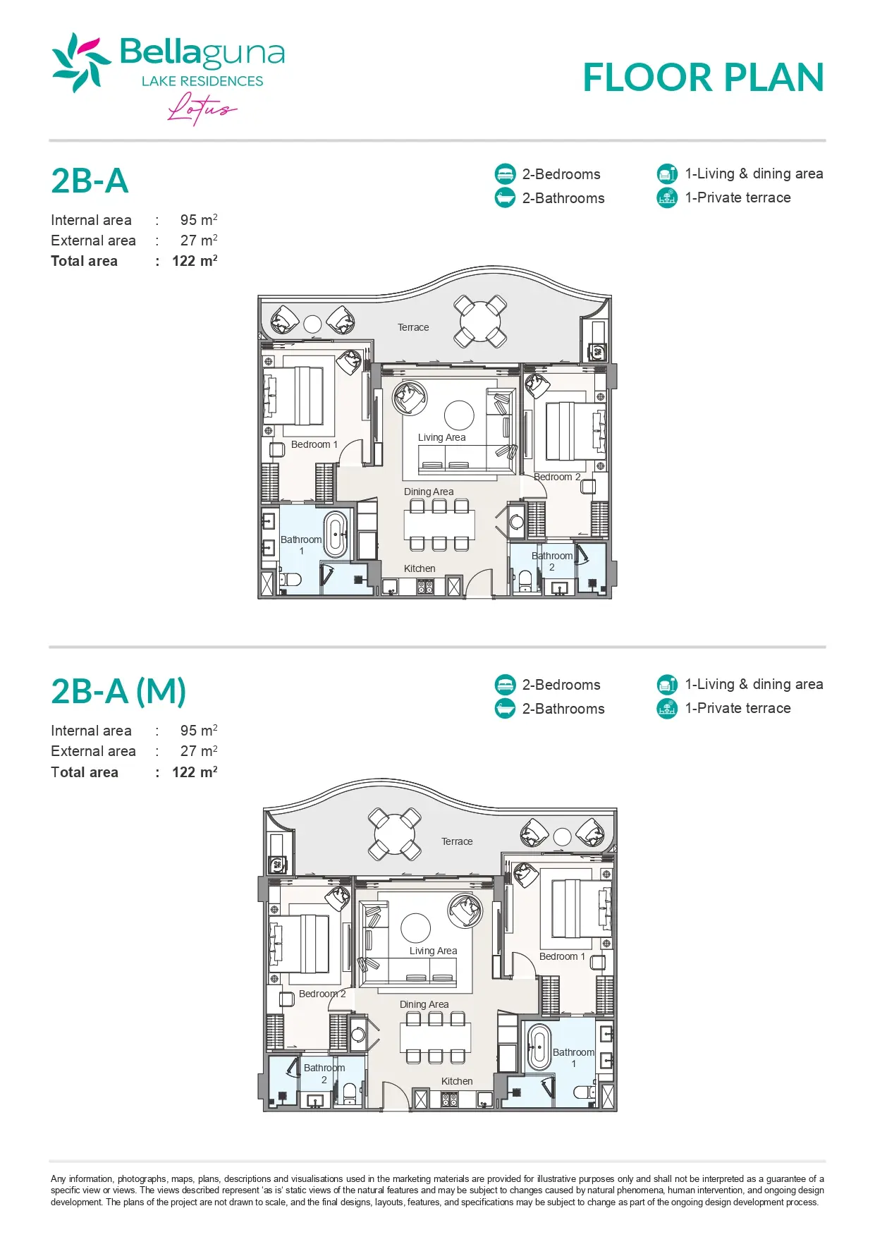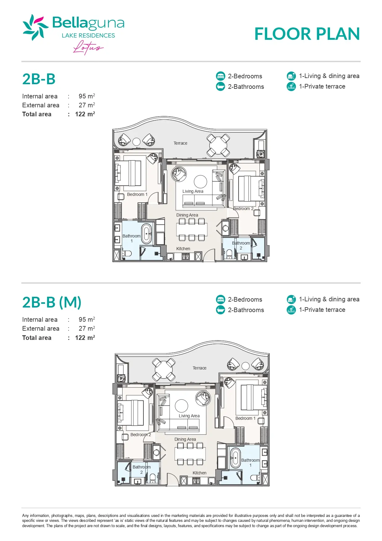 Each Bellaguna Lake Residence Lotus – 2BR home features two well-appointed bedrooms, offering comfort and privacy for residents and guests alike. The master bedroom is designed as a serene retreat, complemented by premium finishes, refined textures, and calming neutral tones inspired by the surrounding natural environment. Expansive outdoor terraces extend the living space, providing an inviting setting for relaxation, dining, or enjoying the peaceful lakeside atmosphere.