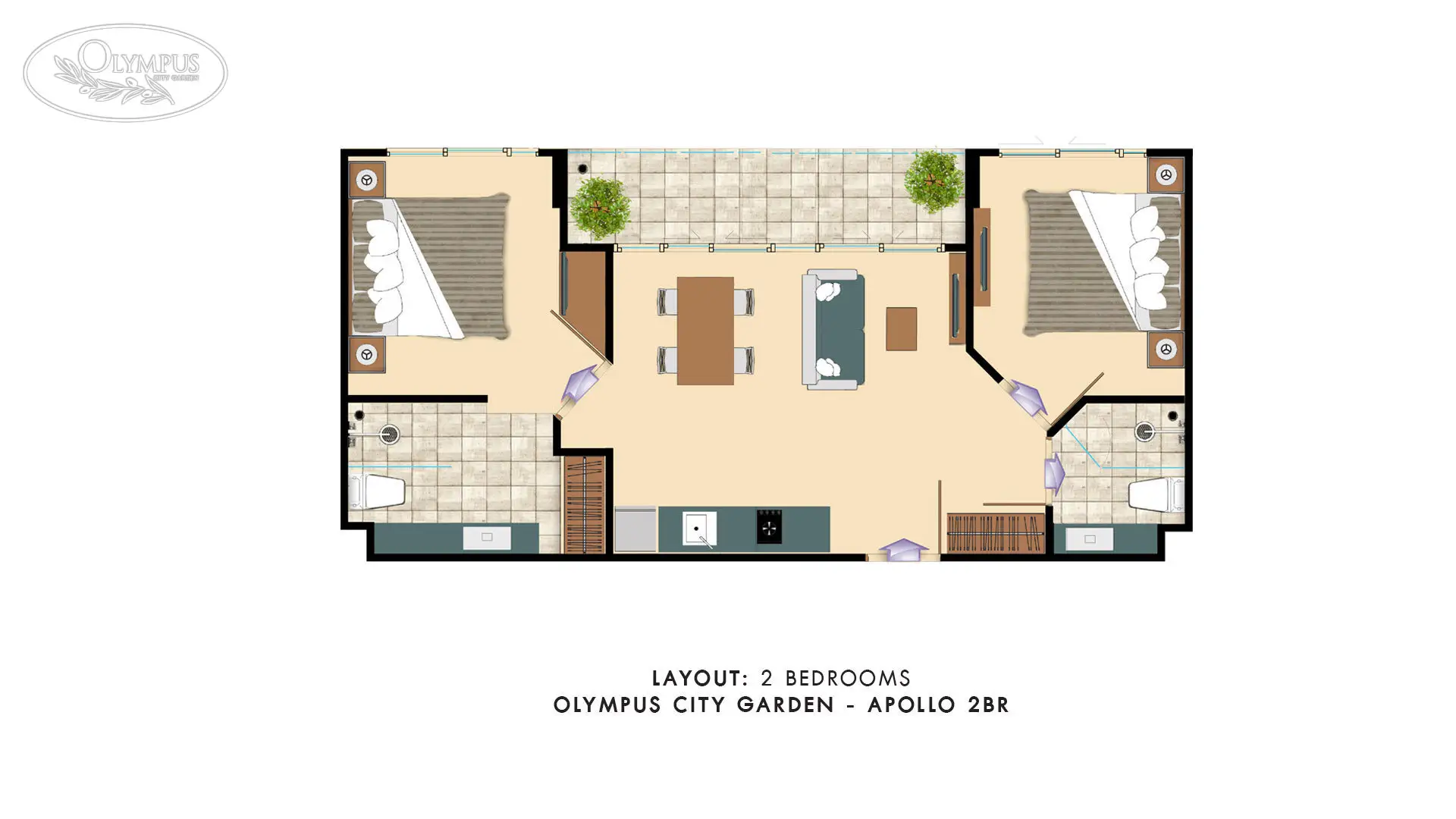The City Garden Olympus – 2BR is designed with families and individuals who need more space in mind. With two generously sized bedrooms, a stylish living room, a fully equipped kitchen, and modern bathrooms, the layout ensures both privacy and comfort. Large windows allow plenty of natural light, while open-plan interiors create a welcoming and airy atmosphere.