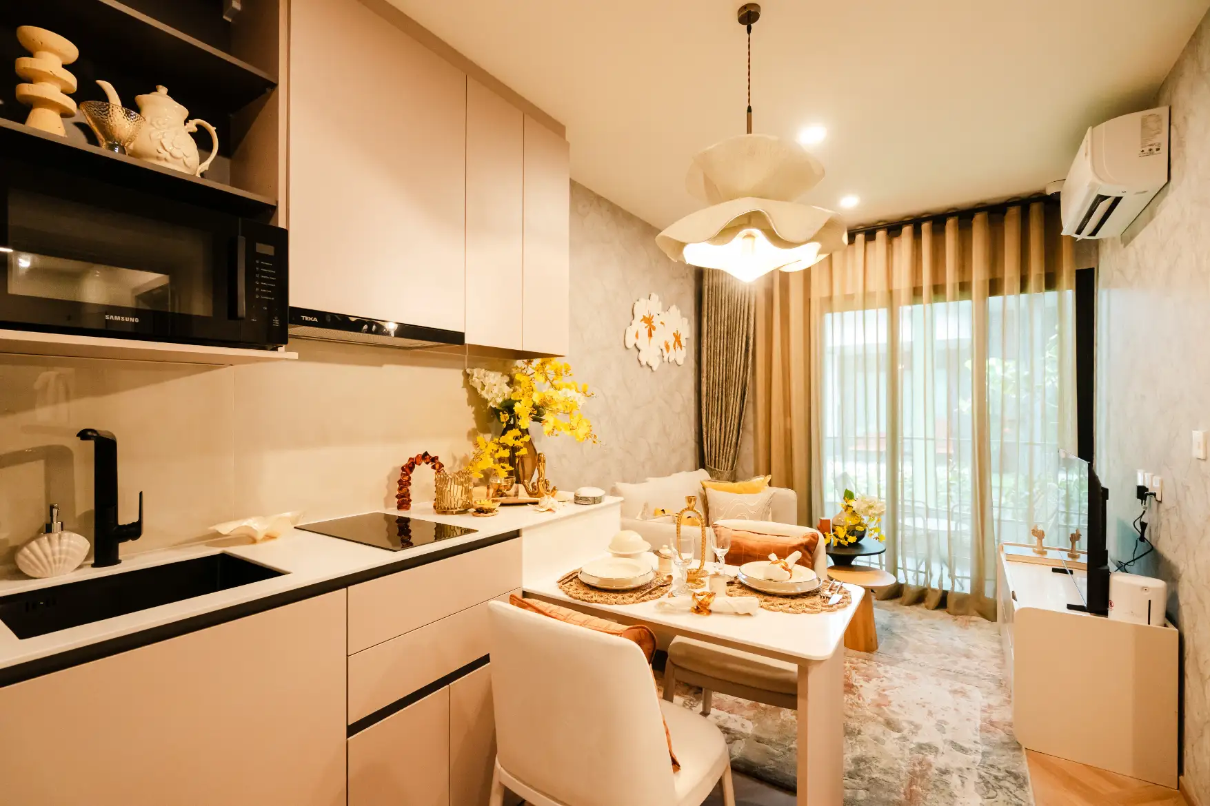The 1 BR-M unit is perfect for individuals or couples who value privacy, comfort, and a relaxing environment. Its open-plan layout ensures seamless movement between living, dining, and resting areas, all designed with functional beauty and wellness in mind. With large windows inviting sunlight throughout the day, the space feels bright, refreshing, and uplifting—a perfect sanctuary to unwind from the world outside.