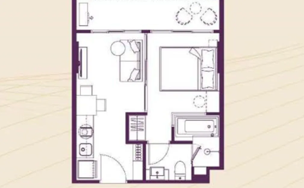 Designed with high-end finishes, the studio features expansive floor-to-ceiling windows that allow an abundance of natural light to flood the interior, creating a bright and airy atmosphere. These large windows also provide seamless access to the private balcony, where you can unwind and enjoy Phuket’s tranquil sunsets or fresh ocean breezes. The strategic design of the studio makes it feel spacious, with an emphasis on maximized living space without sacrificing comfort or style.