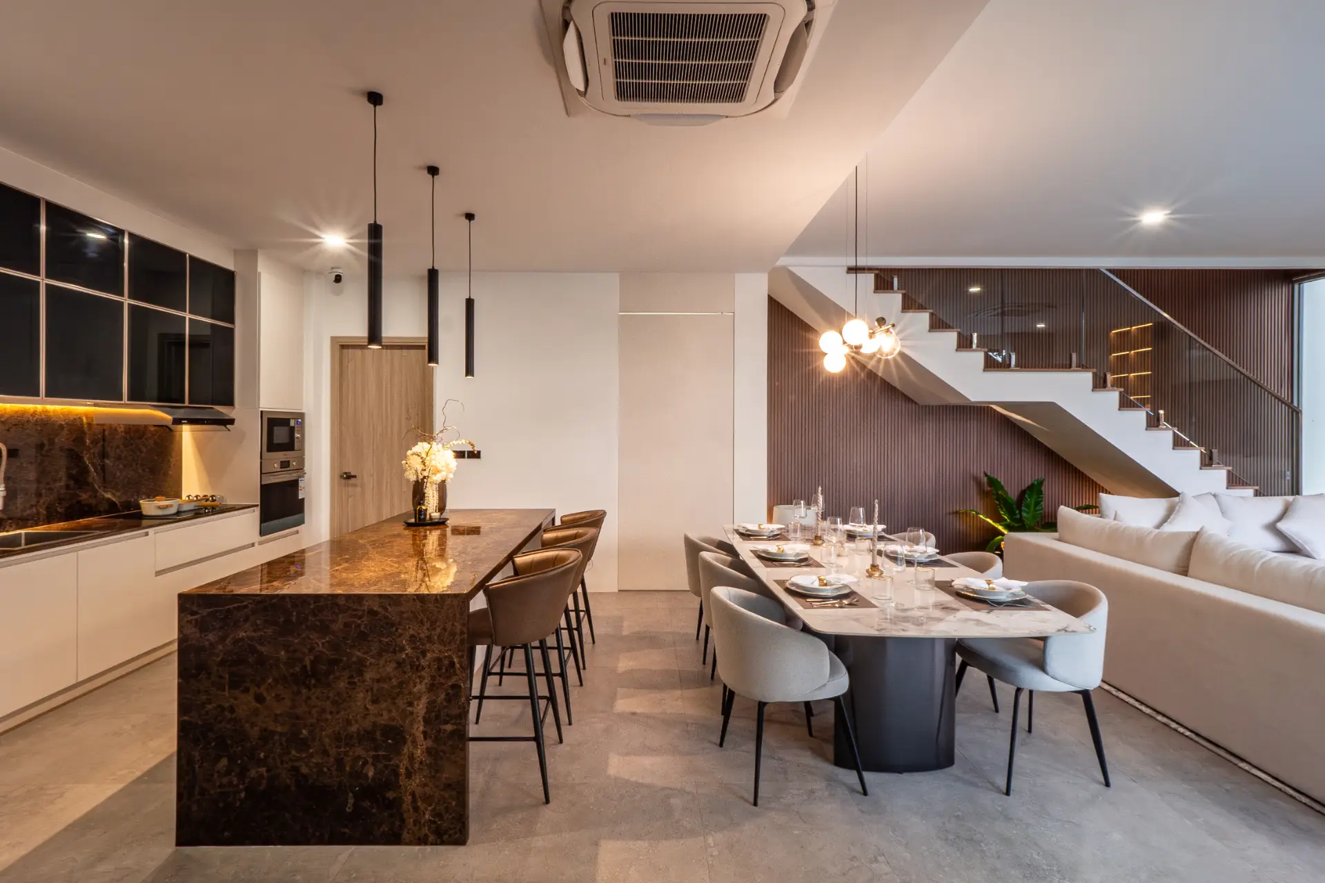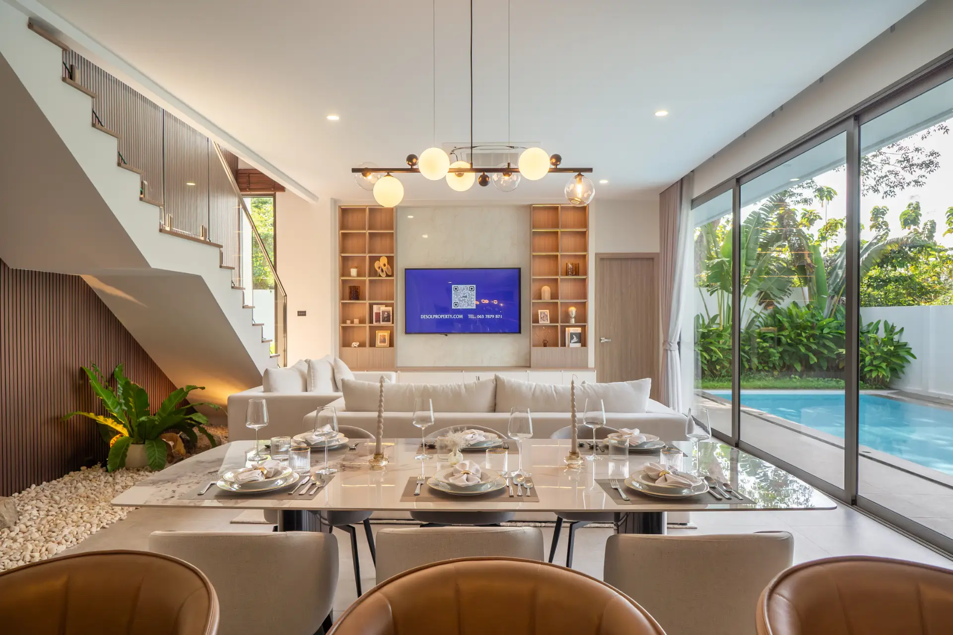 Every unit at D’Chateau Kathu reflects a perfect balance of natural materials, dark-toned finishes, and warm textures, creating a refined yet cozy atmosphere. The signature design emphasizes openness, natural light, and seamless indoor-outdoor transitions. Each villa offers a usable area of 330 sq.m., featuring 4 bedrooms, 4 bathrooms, and expansive living spaces tailored to modern family lifestyles.