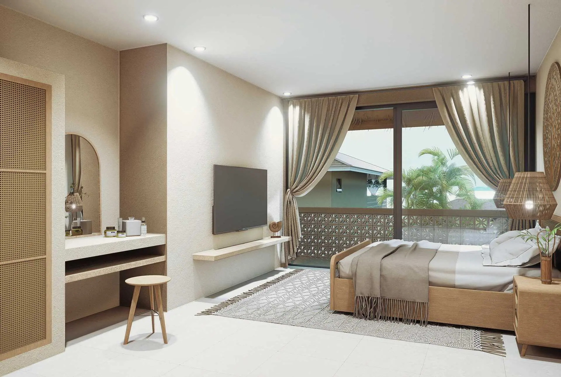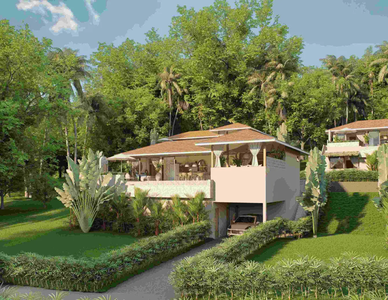 A defining feature of the 3 Bedroom Villa at Eden Rise is its elevated positioning. Built along the natural slope of the land, each villa enjoys open views over lush tropical greenery, surrounding mountains, and distant ocean horizons.